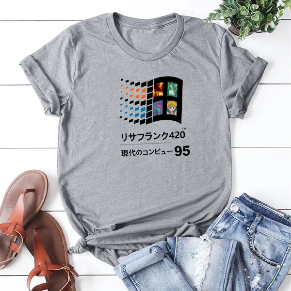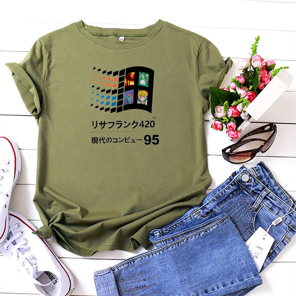 Забавная Корейская футболка с аниме-рисунком, женские повседневные футболки с круглым вырезом, черная и белая футболка, Женская хлопковая свободная футболка для женщин