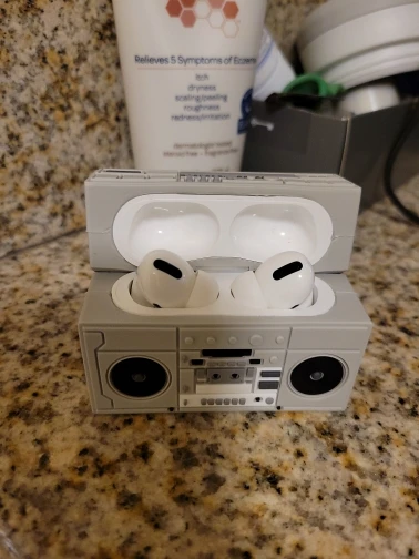 Этот продукт выглядит так хорошо на фото, пока вы его не увидите. Дизайн хороший, но есть проблемы только с размером (слишком большой) держатель также не хорошо расположен. Как вы видите на фотографиях, когда вы повесите его на держатель ключей, как и каждый другой чехол Airpod, вы заметите, что он отпадает, даже не заметив, что крышка не прикреплена к нижней части. Мой выпадает дважды, и я теперь должен держать его в руке, когда ходите, что не слишком круто, по сравнению с обычным, что вы просто руки на держателе ключа или ремень отверстия. Решение-продукт может быть изменен путем отжима чрезмерного силикона, чтобы уменьшить вес и размер на обеих сторонах, где у вас есть динамики.