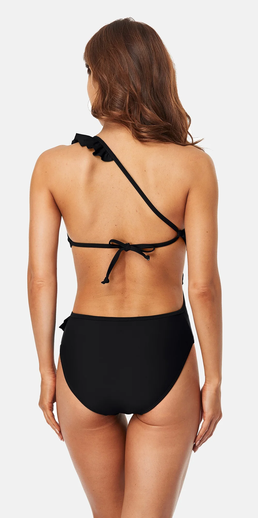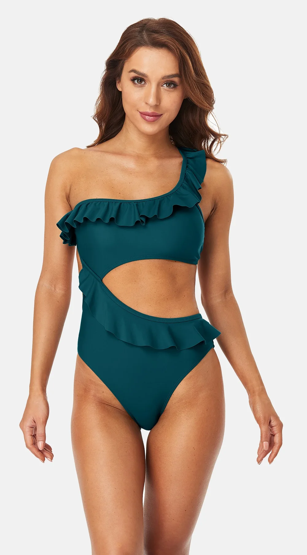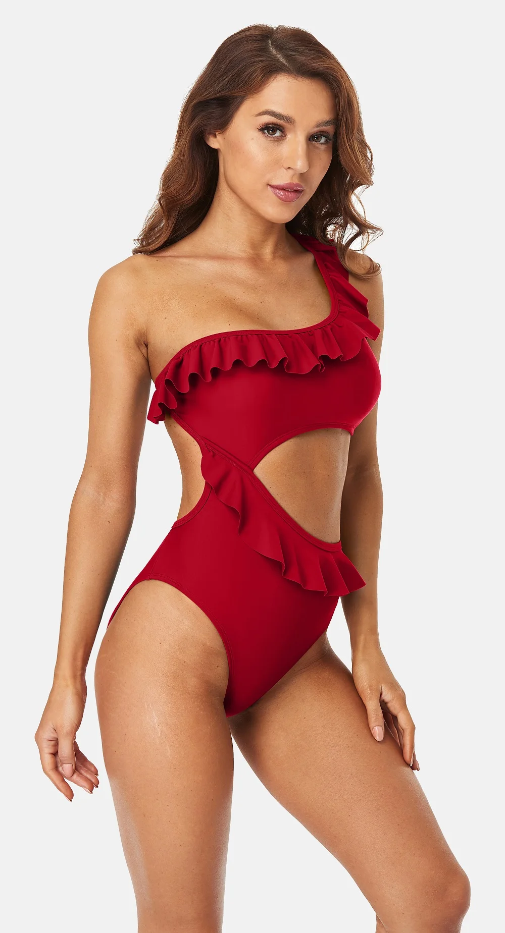Charmleaks Ruffle Cutout One Piece Swimsuits Women Solid One Shoulder Bathing Suits Backless Monokini Swimwear