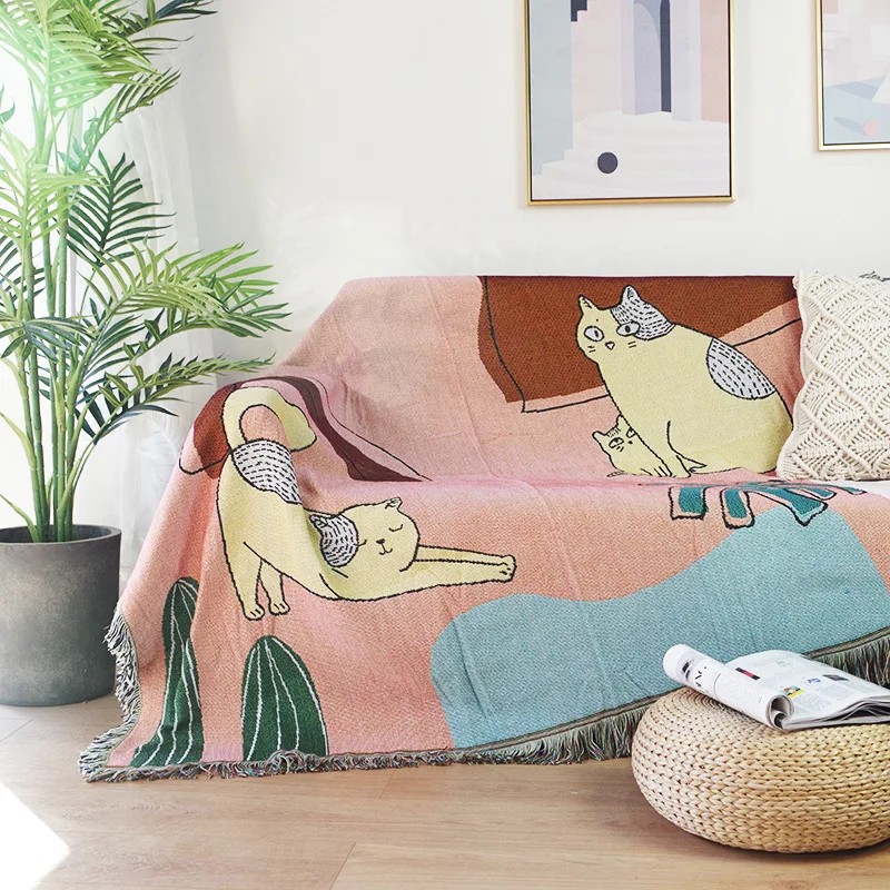 Хлопковое одеяло для дивана с котом, теплое трикотажное одеяло в клетку для кровати, домашнего кресла, кресла для отдыха, покрывало для новорожденных