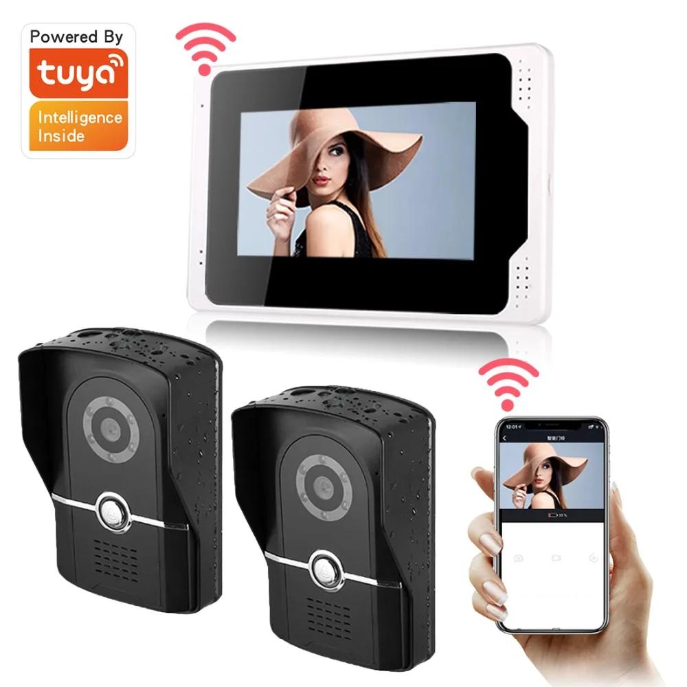 Приложение Tuya, 7 дюймов, проводной/беспроводной Wifi, ip-видео телефон, дверной звонок, домофон, система входа с проводной камерой 1080, ночное видение, поддержка удаленного приложения, разблокировка, запись, снимок