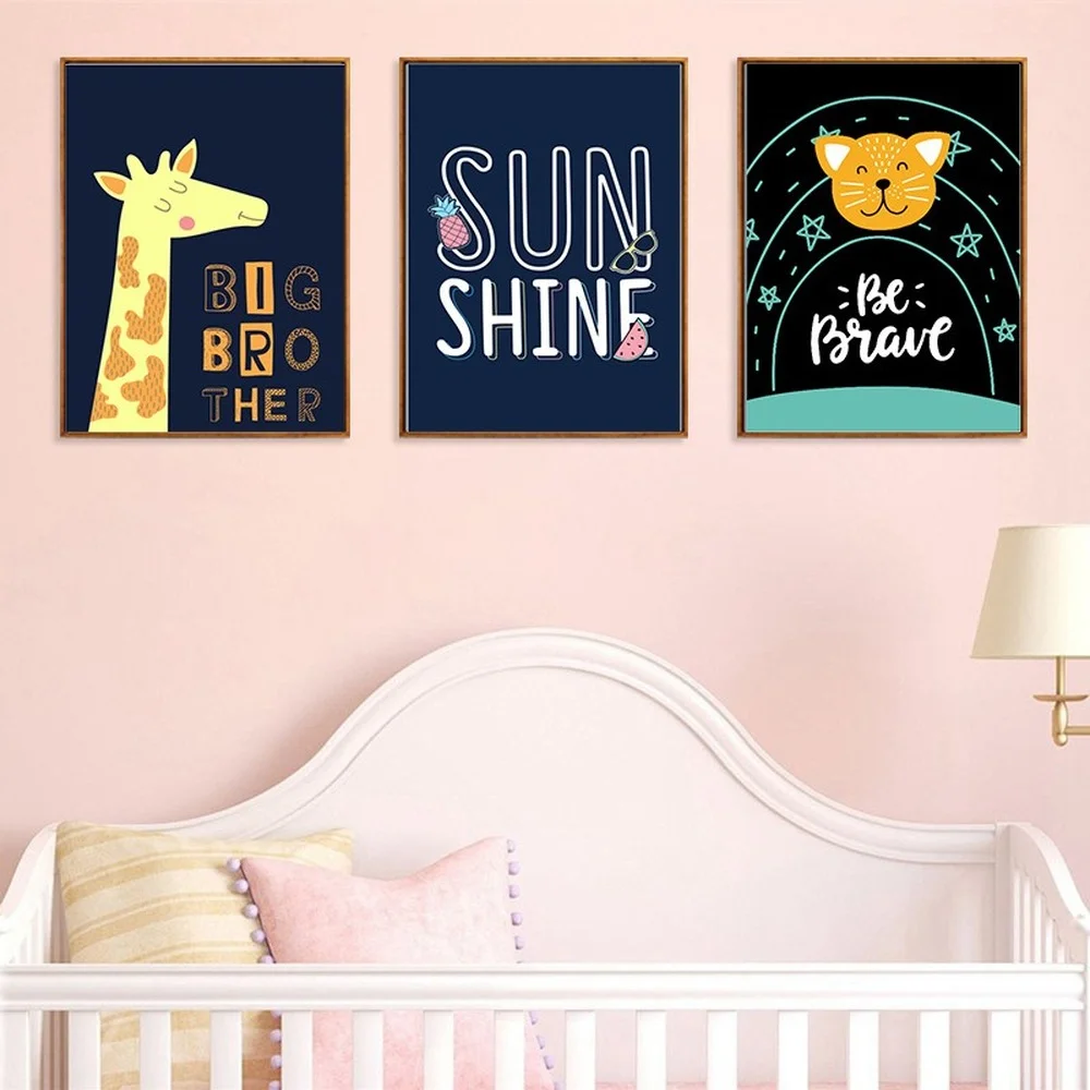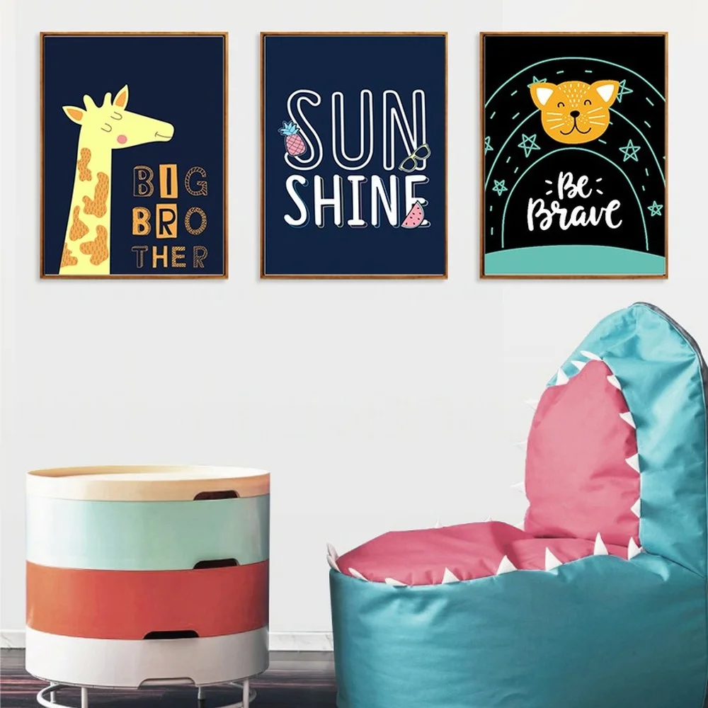 Милые Мультяшные животные холст картина жираф дети благословение фраза постер гостиная детский сад декор эстетические изображения