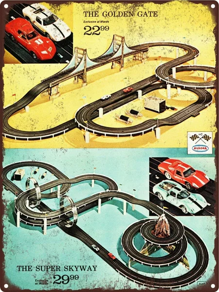1967 Аврора Слот автомобиль гоночный Набор трек Золотые ворота Skyway металлический знак