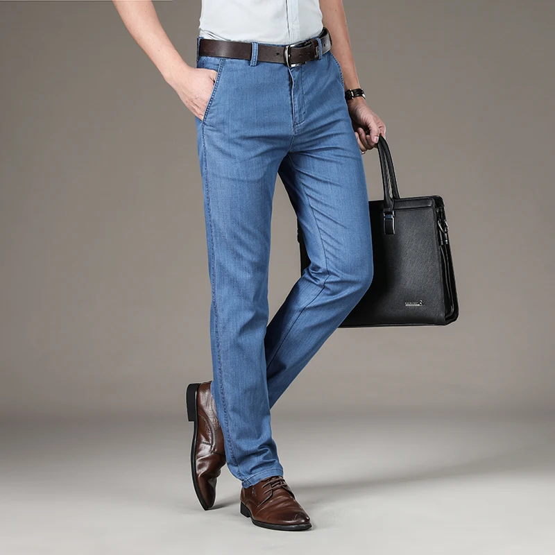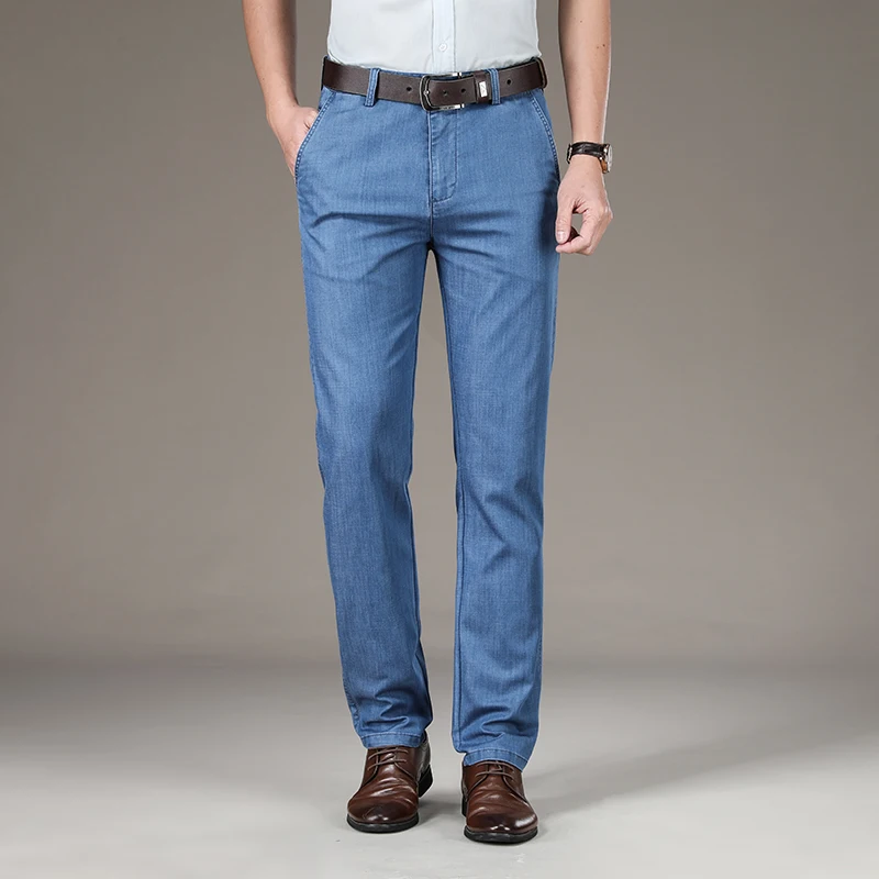 Мужские джинсы с высокой талией, повседневные Прямые тонкие удобные дышащие джинсовые брюки из модала, Новое поступление на лето 2021
