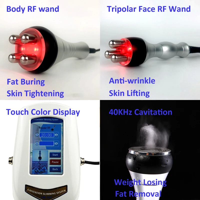 1) ультразвуковая кавитацияУльтразвуковая кавитация инструмент для похудения принимает новейшие научные и технологии, которые могут обеспечить эффективное лечение упрямого целлюлита и апельсиновой кожуры жира. Ультразвуковой генератор кавитации основан на резонансе волн давления, он дает безопасный и нехирургический вариант для целей формы тела.В технике используется низкочастотный ультразвук. Ультразвуковые волны проводятся через кожу, проникайте непосредственно в жировую ткань и разбивайте ее на мелкие кусочки, вызывающие микропузырьки, которые превращают жир в жидкое вещество (это явление называется «кавитацией»). Жидкость затем легко выводится из организма лимфатической и мочевой системой человека.2)RFИспользуя уникальную технологию глубокого нагрева (радиочастотная плазменная технология), она может изменить образование коллагена и способствует миграции фибробласта и укладке нового коллагена.Технология RF быстро меняет полярность электрического поля, которая поочередно привлекает и отталкивает электроны и заряженные ионы в дерме и подкожной клетчатке. Естественное сопротивление ткани (сопротивление) к этому движению производит тепло и тепловой эффект на дерме приводит к коллагеновой стимуляции и активации фибродоменных клеток. Сокращение коллагена и затягивание тканей сопровождается новым производством коллагена с течением времени. Поскольку ток не протекает через эпидермис, поверхность кожи не подвержена воздействию тепла и не требует поверхностного охлаждения. RF может быть предложен для улучшения кожи слабления, морщин и контуров лица.