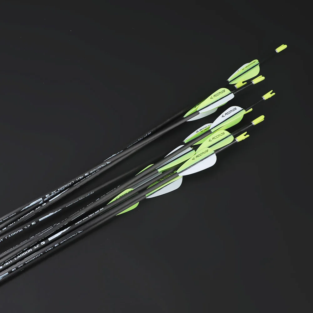 Стрелы из чистого карбона для лука, 6 шт., ID 3,2 мм, 40 т, стрелы для лука 350, 400, 450, 500, 550, 600, 700, 850, стрельба из лука