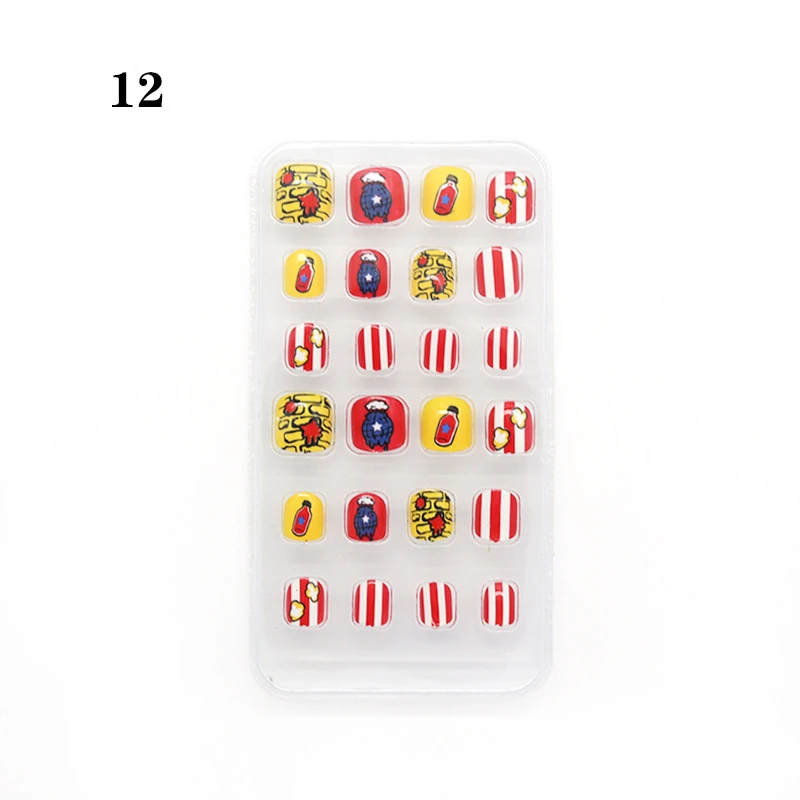 Ногти накладные Детские разноцветные с мультяшными животными, 24 шт.