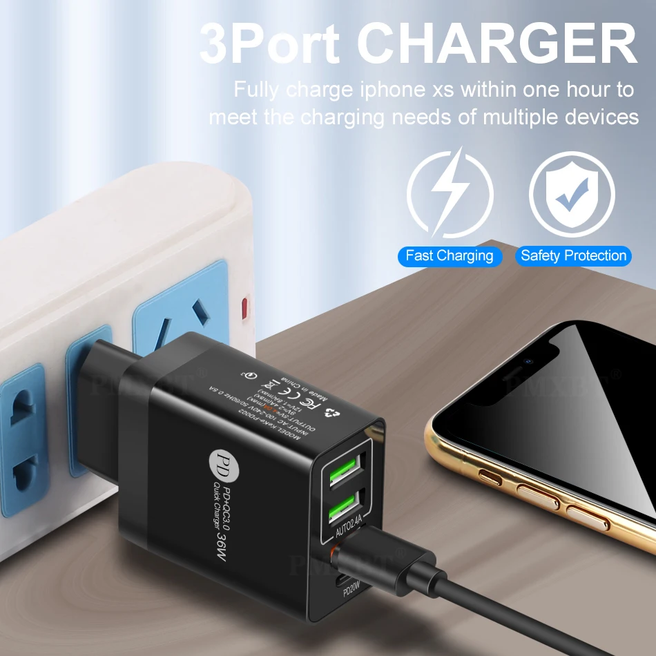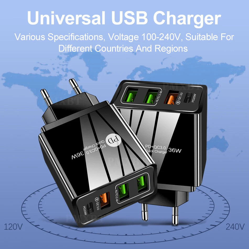 Зарядное устройство USB PD, 36 Вт, быстрая зарядка QC3.0 USB для iP...