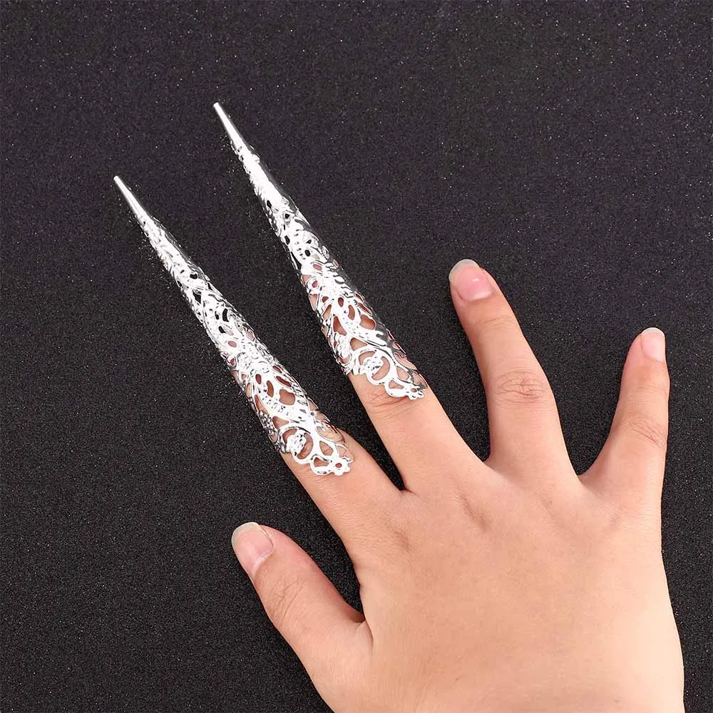 5 шт в старинном стиле под старину Стиль Queen кольцо для ногтей из искусственного шелка с серебряным кольцом комплект пальца с нашивкой в виде кольца на безымянном пальце в наконечник защита аксессуары для танца живота