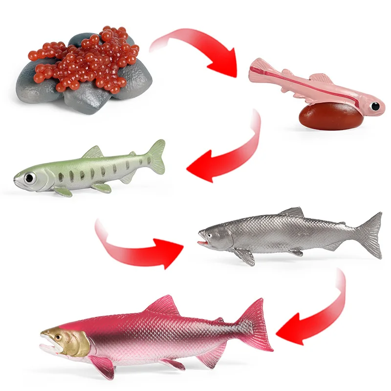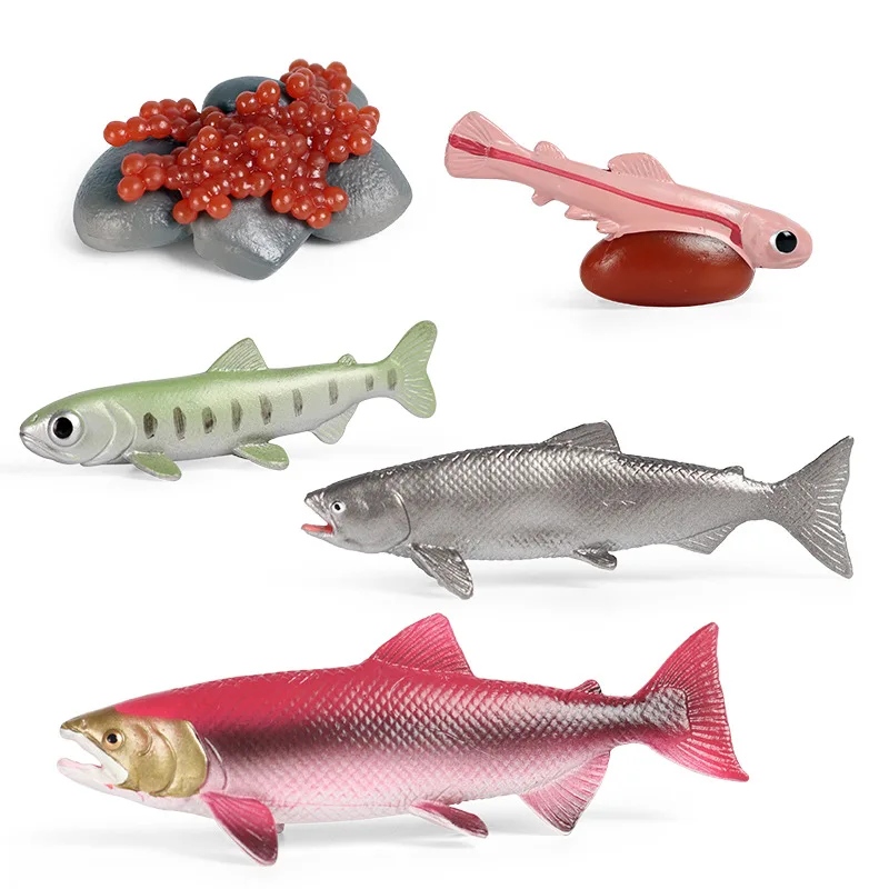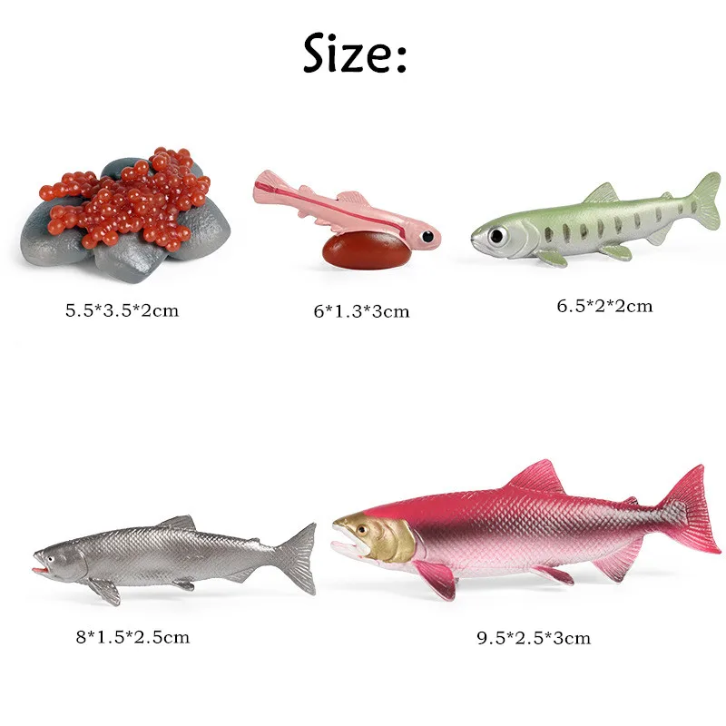 Фигурка экшн-фигурки лосося, рыба, игрушки, фигурка животного, выросшего жизненного цикла, модель животных, Обучающие инструменты для детей
