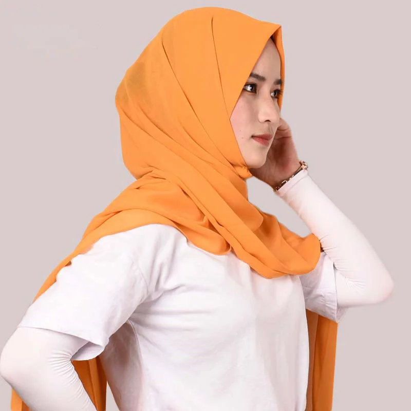 Однотонный шифоновый исламский головной платок Джерси-шарф хиджаб для мусульманских женщин 2021 летняя индийская Турецкая повязка на голову