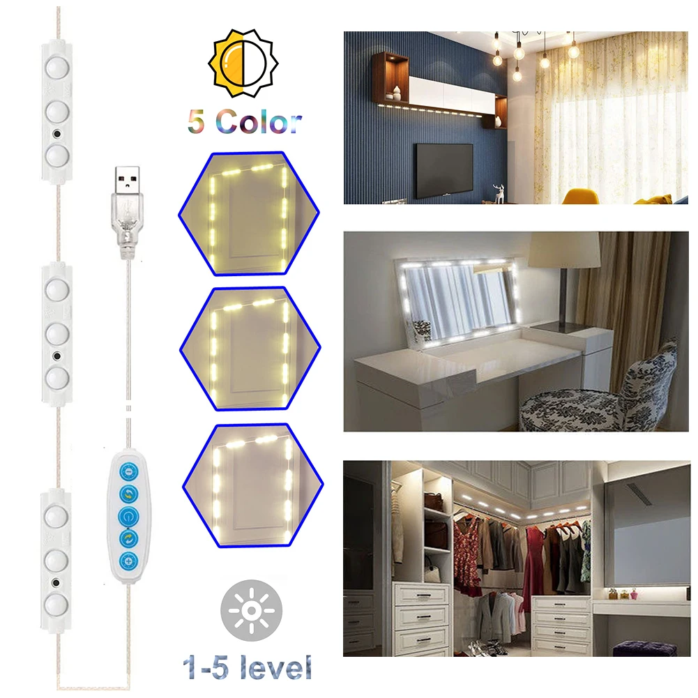Светодиодсветильник полоса для зеркала для туалетного столика, 5 цветов режимов