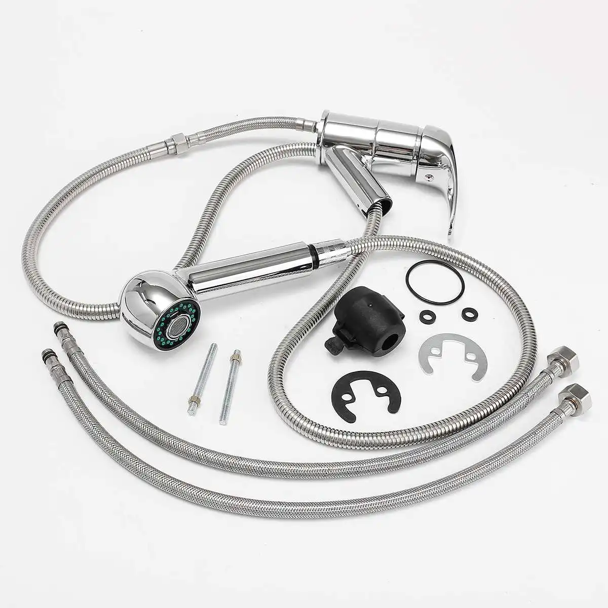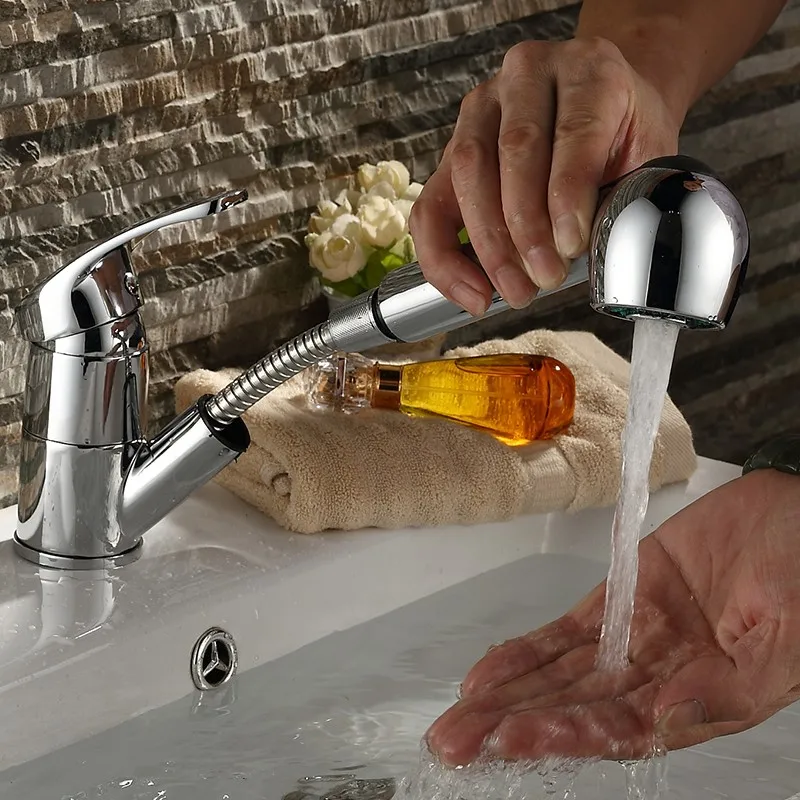 Особенности:-Рекомендуемое давление 1-5 бар-Круглый Керамический дисковый клапан-Корпус из твердой латуни с хромированной отделкой-Хромированный операционный рычаг позволяет поток воды, просто нажимая рычаг вверх или вниз и сбоку для точного контроля температуры-Индикатор горячей и холодной погоды-Диффузор, установленный в носике для плавного потока воды-Поворотный носик-Вытяжная насадка для душа (нормальный и душ)-Плетеная саржевая трубка из нержавеющей стали с защитой от обертывания, свободная вытяжка, делает раковину больше не мертвойСпецификация:Материал корпуса: 59 медная гравитационная отливкаСердечник клапана: ceramic 35мм керамический сердечник клапанаСерия: кран (можно поворачивать)Барботер: ограничитель барботера, экономия воды и окружающей средыМатериал ручки: цинковый сплавОтделка: полированное хромированное покрытие 24H кислотное испытание солевым спреемСрок службы: ASME--500 000 разТип: Kichen краны для раковиныТип крана: однорычажныйТип: моноблок-миксерПримечание:Каждый набор смесителя должен проверить воду перед выходом из фабрики, поэтому, если вода внутри смесителя является нормальным явлением.