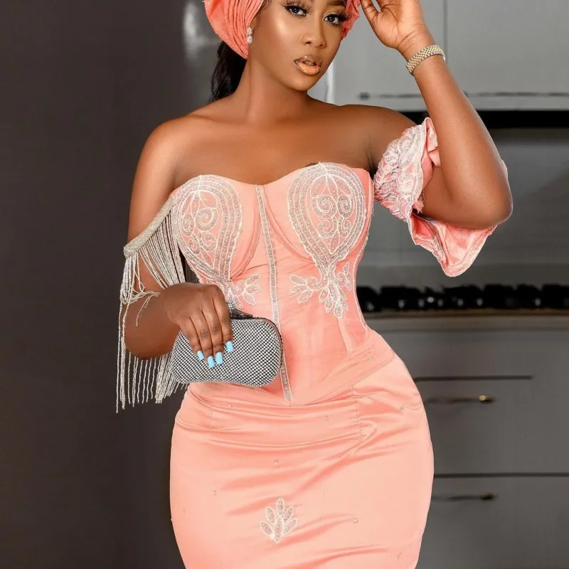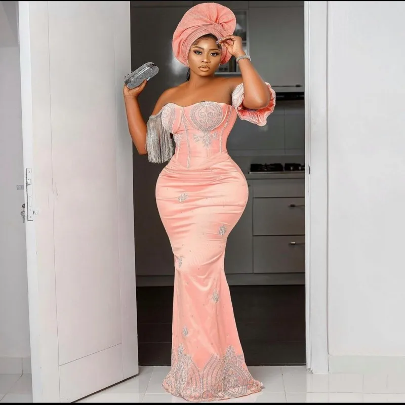 Aso Ebi платье-Русалка для выпускного вечера с открытыми плечами, кисточками и блестками, Длинные атласные африканские наряды для торжественных мероприятий, вечернее платье