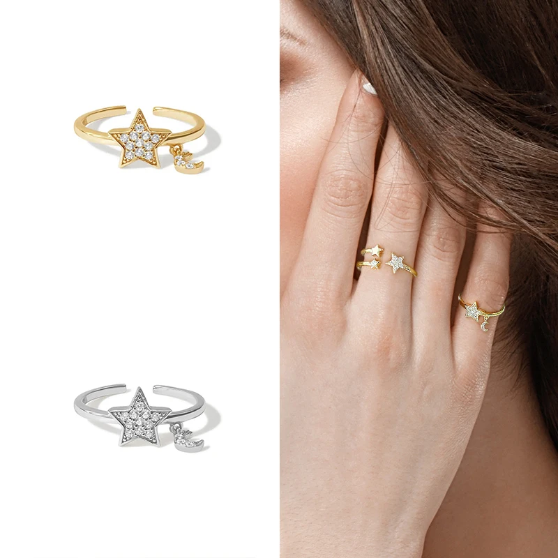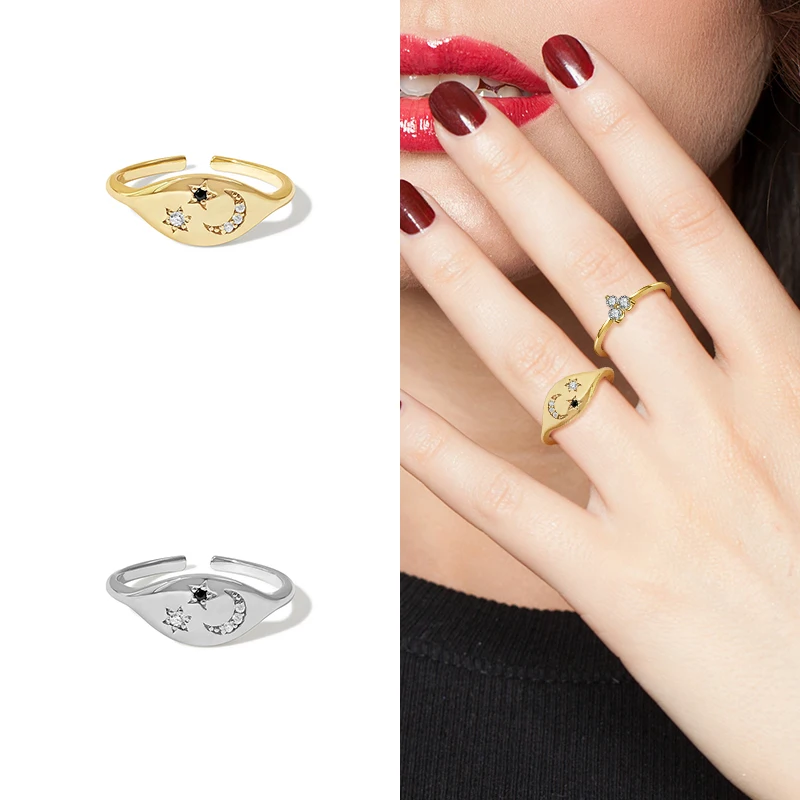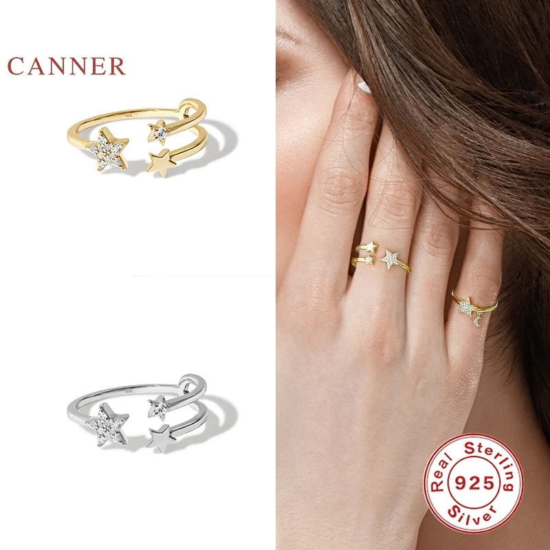 CANNER 925 пробы Серебряное кольцо с пентаграммой луной, простое роскошное изящное ювелирное изделие, регулируемые кольца для женщин, кольца, кольца, бижутерия