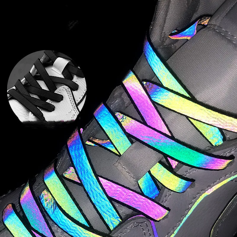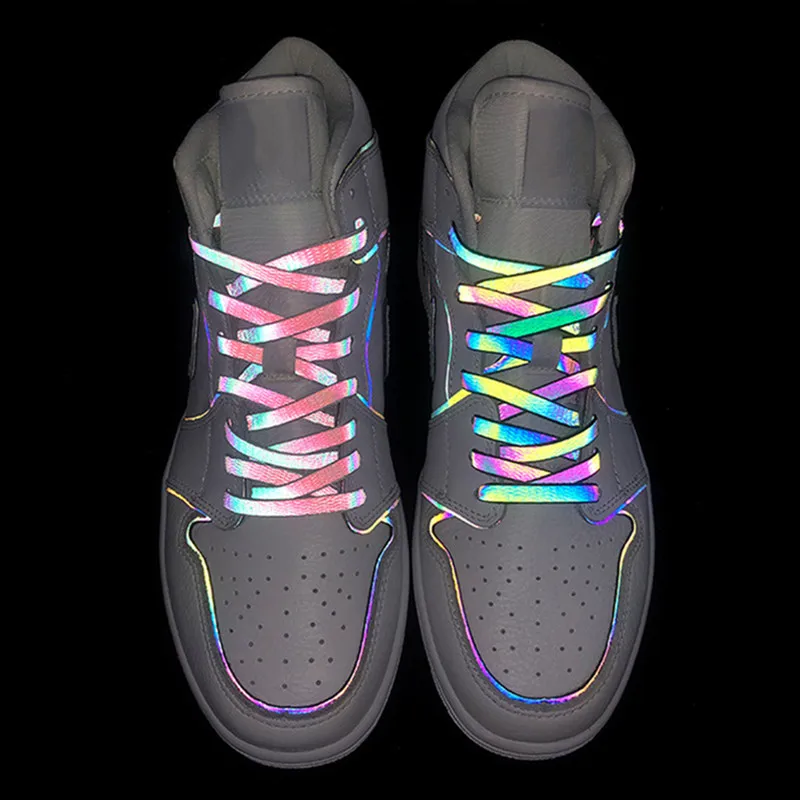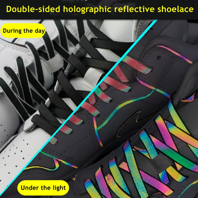 1 пара новых светоотражающих шнурков, двусторонние Светоотражающие Яркие светоотражающие шнурки ботинок бегуна, плоские светящиеся шнурки для обуви
