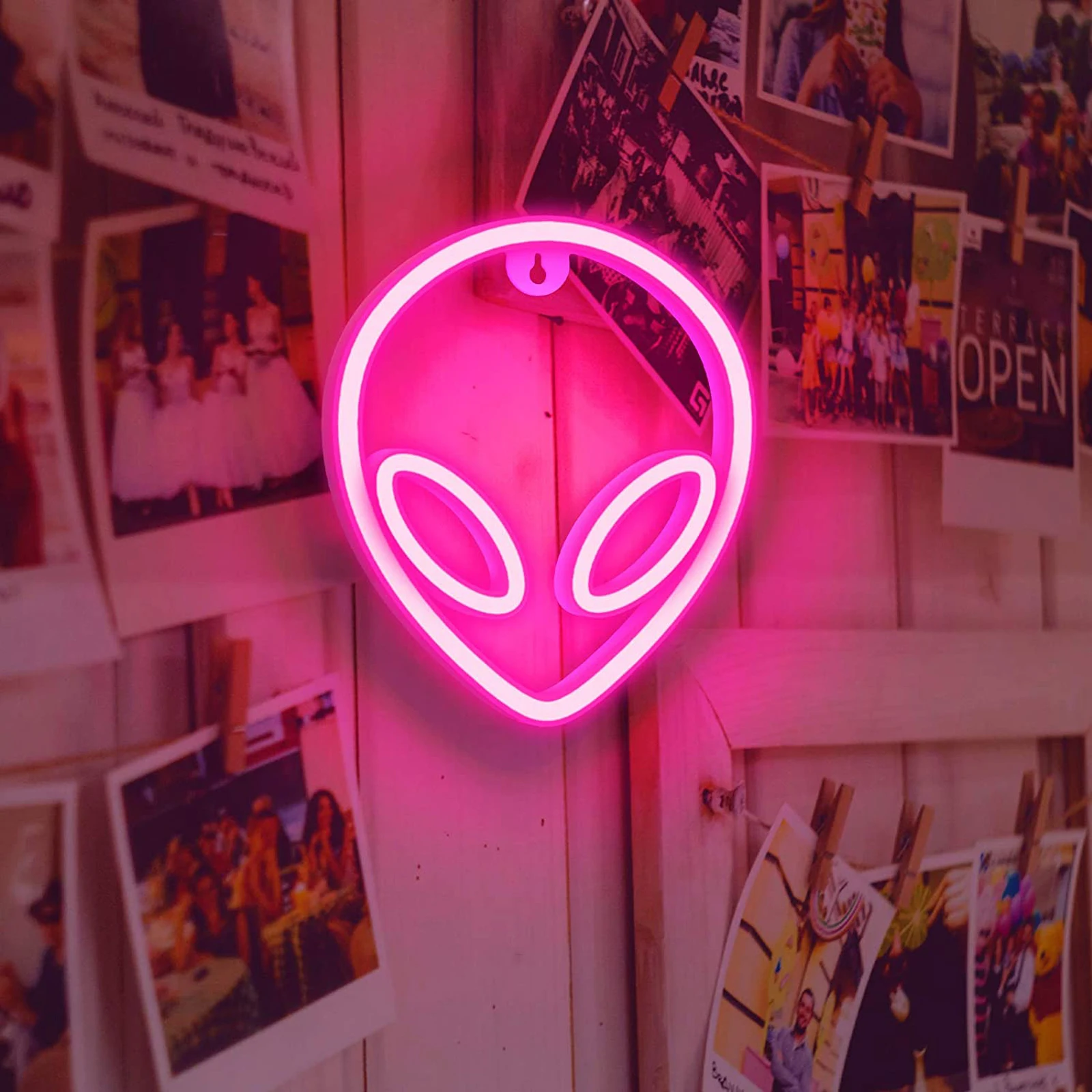 Неоновая вывеска в форме инопланетянина, настенные подвесные светил...