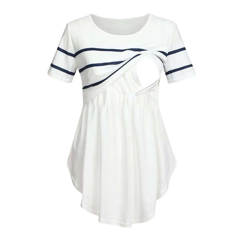 Одежда для беременных Футболка для беременных женщин Удобный свободный топ с коротким рукавом и полосатым принтом для кормления грудью блузка Одежда