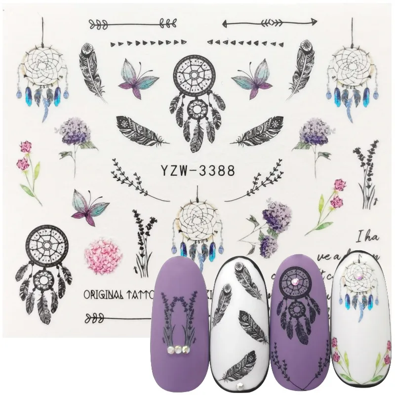 Виниловые наклейки на стену с рисунком льва Sun Moon Мандала Цветочный Принт Водные Наклейки для маникюра, украшение для ногтей, аксессуары для ногтей