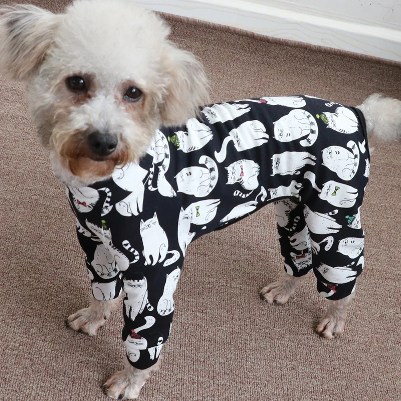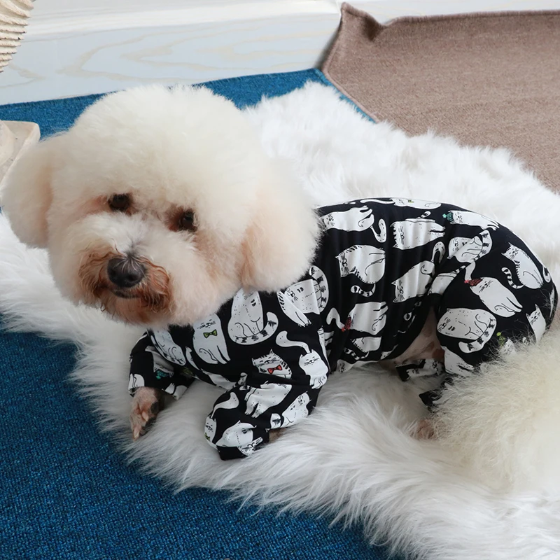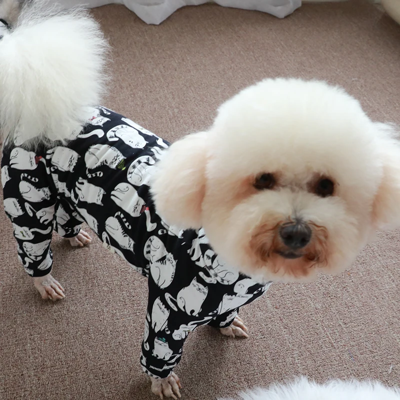 Комбинезон для собаки тонкий комбинезон из 100% хлопка Одежда для щенков с принтом Стрейчевые пижамы для маленьких собак Толстовка Для Пуделя чихуахуа