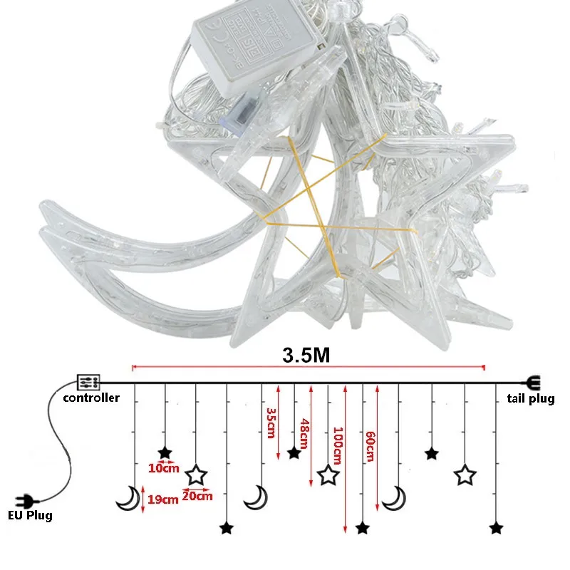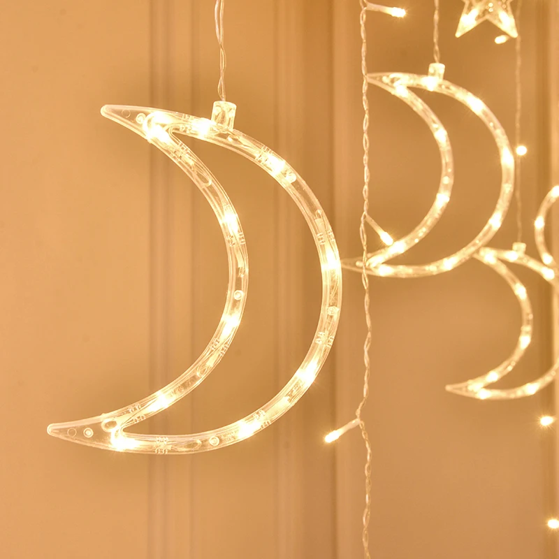 СВЕТОДИОДНАЯ Гирлянда в виде луны и звезд, гирлянда для спальни, окна, рождественские сказочные огни, гирлянда, украшение для Хэллоуина, свадьбы, праздничное освещение