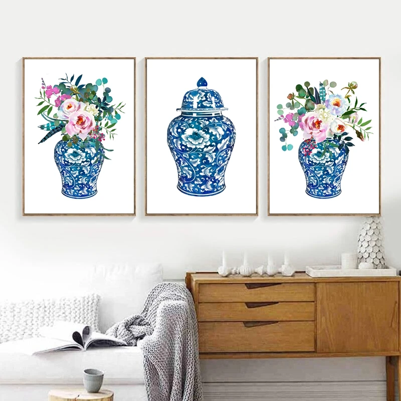 Имбирная банка, букеты, акварель, китайский стиль, Декор, холст, Цветочный, растительный постер, Восточная ваза, розы, картина, фарфоровая банка icon star icon star icon star icon star icon star