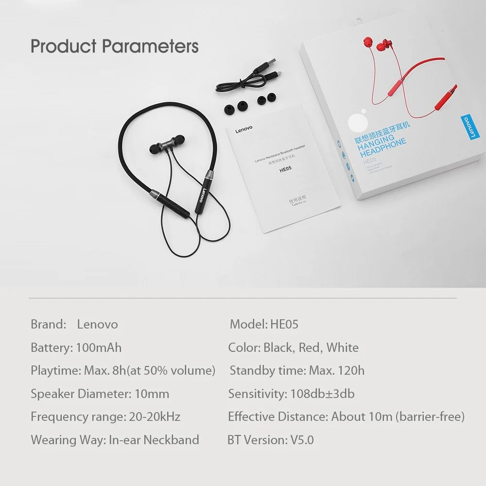 Оригинальные беспроводные магнитные наушники Lenovo HE05 Bluetooth ...