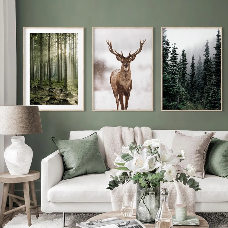 Картина на холсте с изображением скандинавских пейзажей леса и зеле...