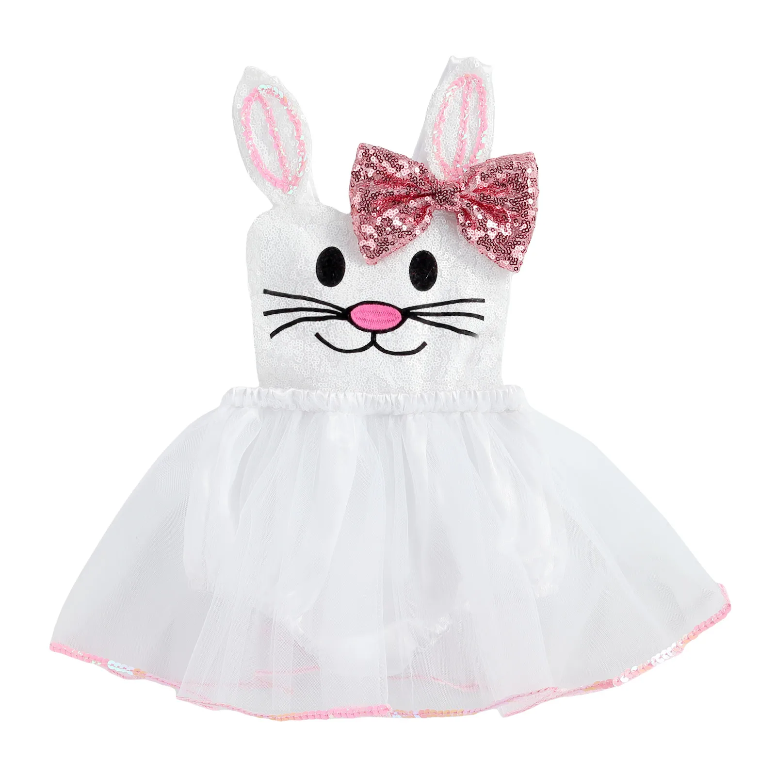Пасхальное платье-комбинезон для девочек 1-3 лет Милая летняя фатиновая юбка без рукавов с рисунком из мультфильма и пайеток наряды для вечеринок