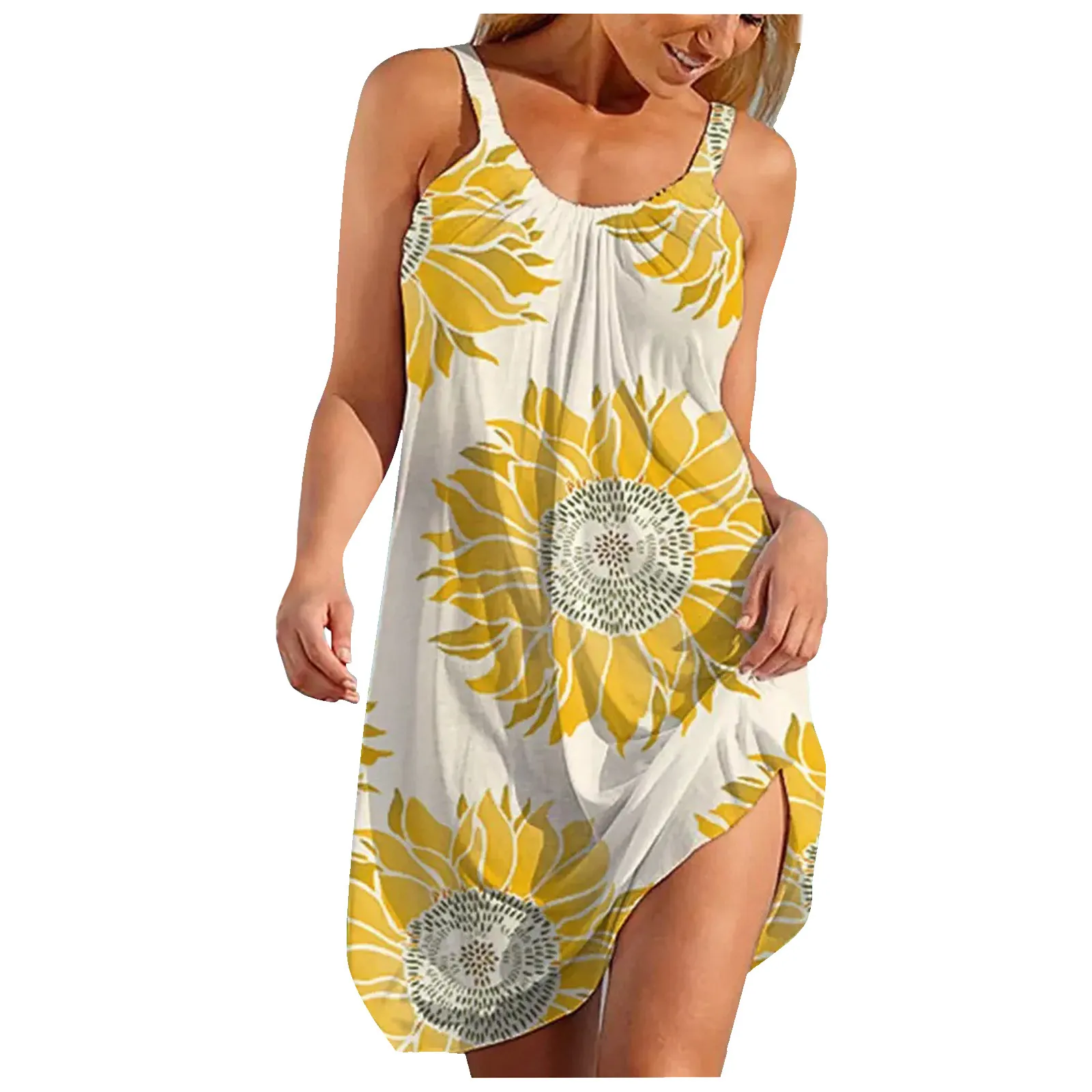 4 # платья без рукавов с принтом подсолнухов женское Платье сексуал...