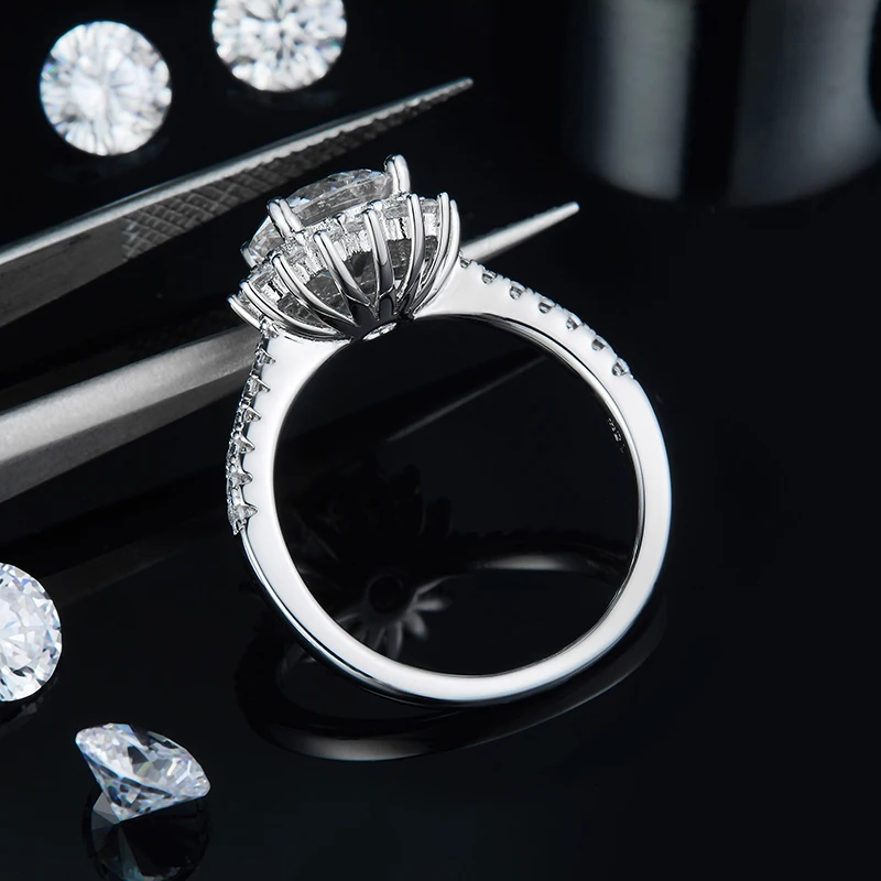 *** Примечание: только основной камень-моиссанит, другие-Циркон. Пожалуйста, убедитесь, что ваш размер кольца и выберите правильный размер кольца. 1ct Муассанит является 6,5 мм,1.5ct Муассанит является 7,5 мм.2ct moissanite 8 мм.3ct моиссанит 9 мм.