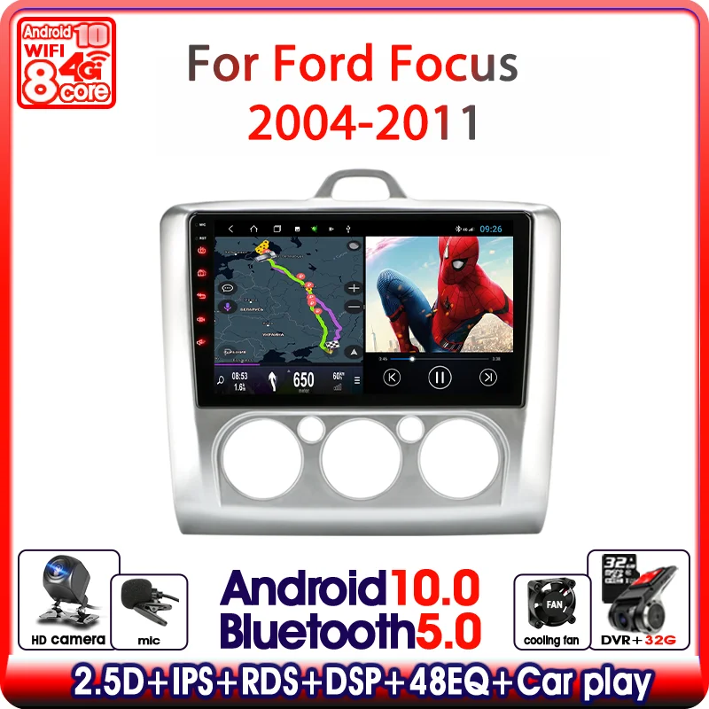 Автомагнитола на Android 10,0 для ford focus EXI MT 2 3 Mk2 2004 2005 2006 2007 2008 -2011 мультимедийный видеоплеер навигатор GPS 2 din