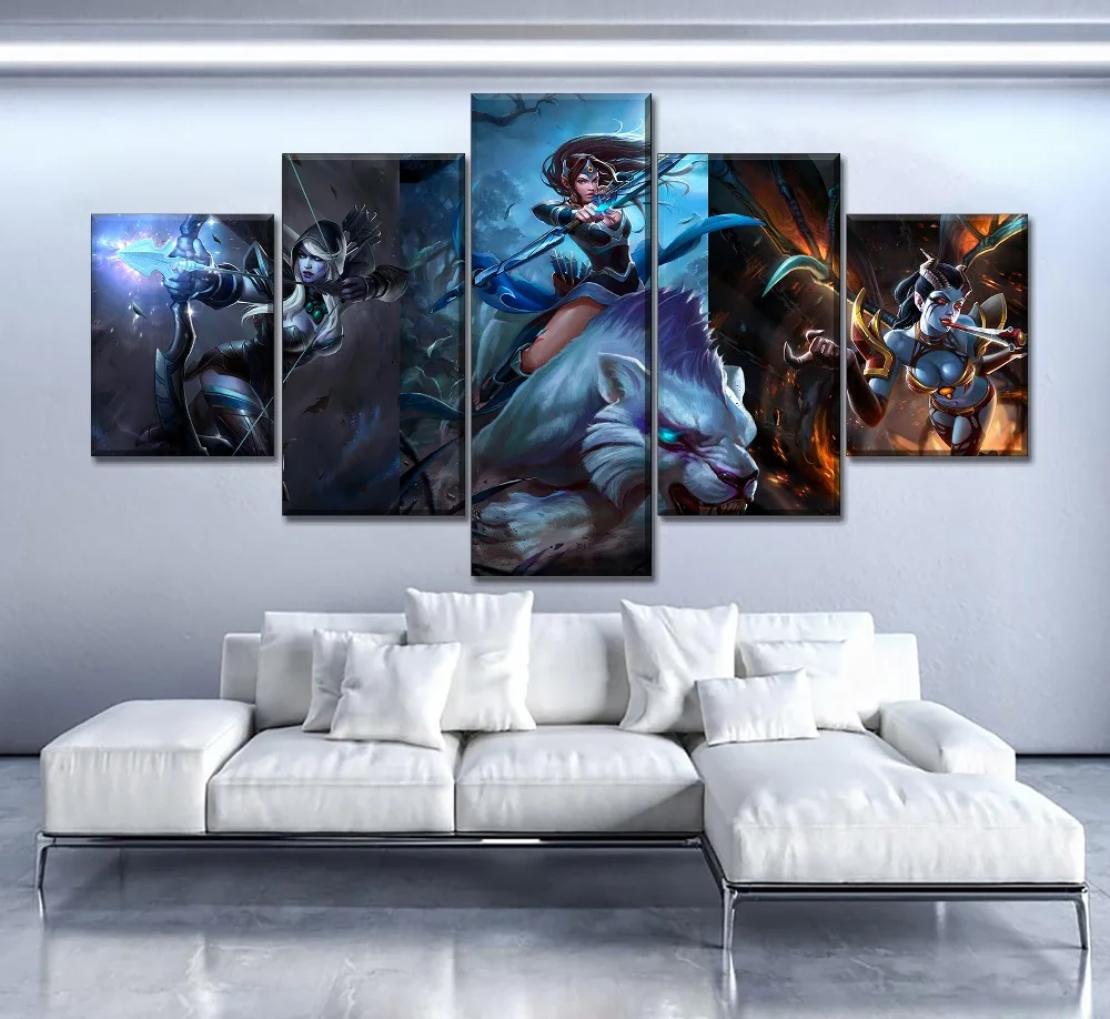 5 Panel DotA 2 Game Poster Canvas HD Print