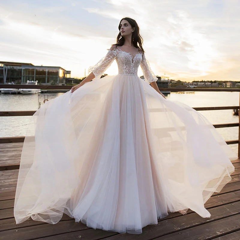 Богемное свадебное платье кружева накладные аппликации на половину ...