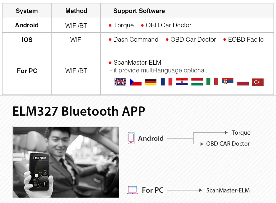 3. Примечание: он поддерживает только платформу android, он не работает с системой iOS. Если покупатель нуждается в работе для iOS для iPhone, пожалуйста, купите ELM327 WIFI.
