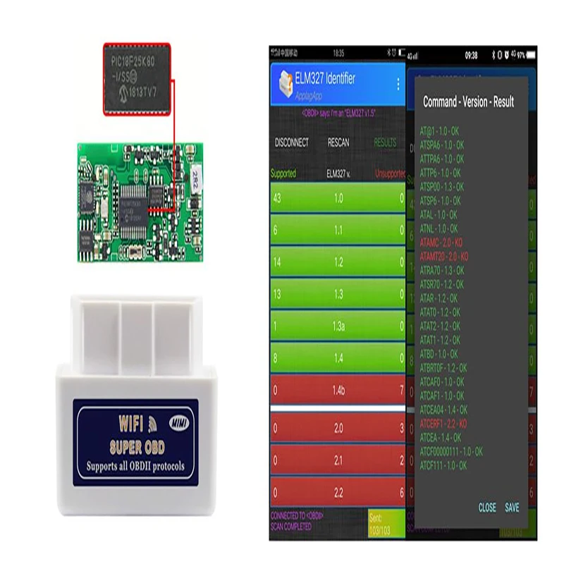 1. Все ELM327-версия V 1,5, 1 печатная плата, с чипом PIC18F25K80.2. Bluetooth версия ELM327 пароль: 1234 или 0000. WIFI версия ELM327 без пароля.3. Все elm327 поддерживают ATAL ATTP и другие положительные отзывы.4.BT ELM327 ------- Android телефон работаетWIFI ELM327------IOS и Android телефон работает