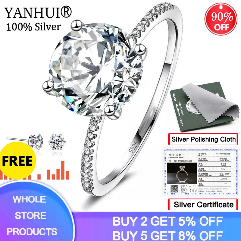 Бренд: YANHUI Fine или Fashion: FineМатериал кольца: 100% оригинальное сереброКольцо камень: 3 карат циркония Вес: 2,3 гКольцо/логотип: S925Сертифицированные ювелирные изделия с серебряным сертификатом и полировочной тканьюЕсли вы получите поддельное серебряное кольцо, мы вернем вам стоимость в 10 раз.