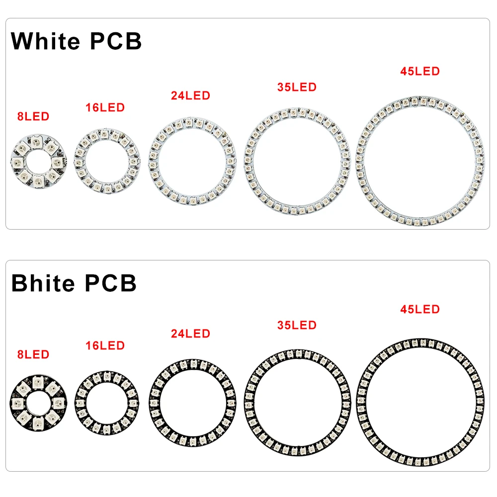 Пиксельное светодиодное кольцо WS2812B WS2812, встроенная индивидуально Адресуемая интеллектуальная ИС, постоянный ток 5 В, полноцветные круглые модульные светсветильник льники 816243545 светодиодов