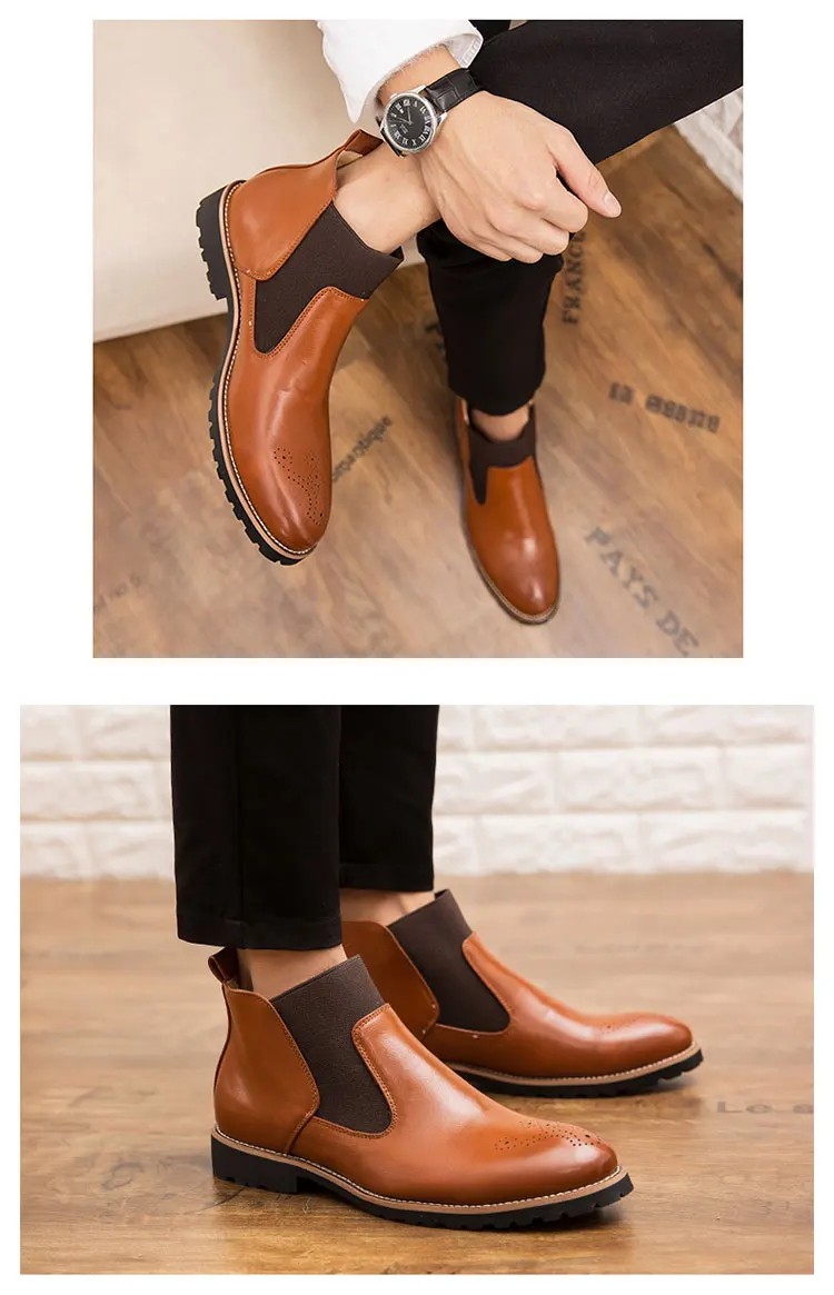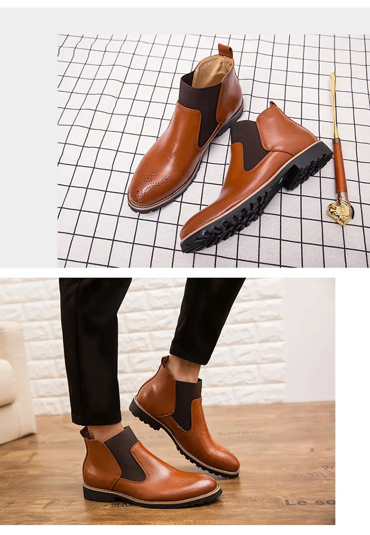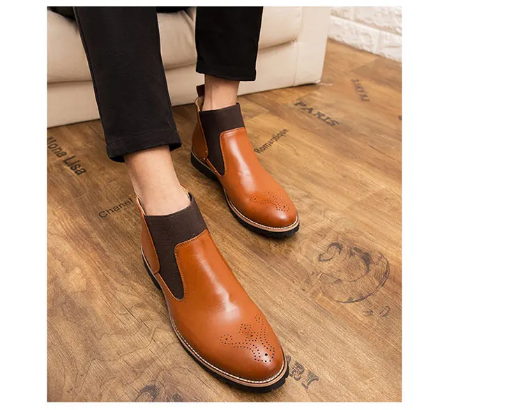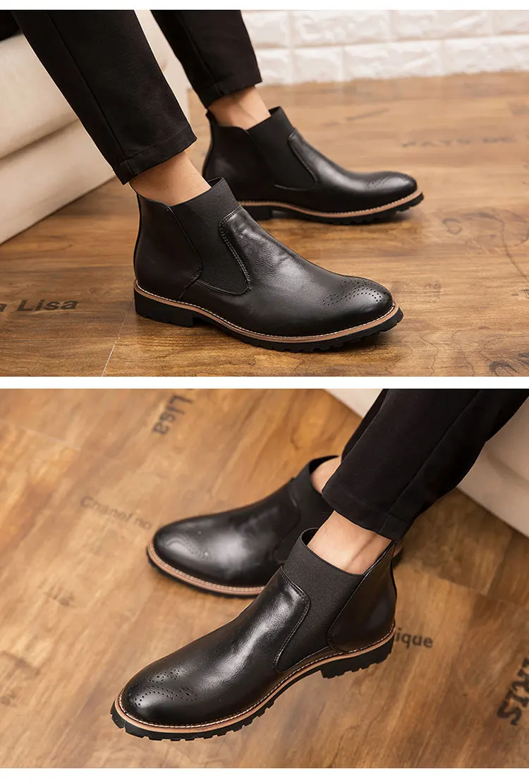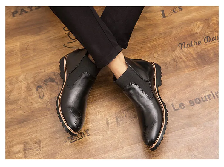 Мужские ботинки челси 38-46, модные повседневные ботинки с высоким берцем, из натуральной кожи, в британском стиле