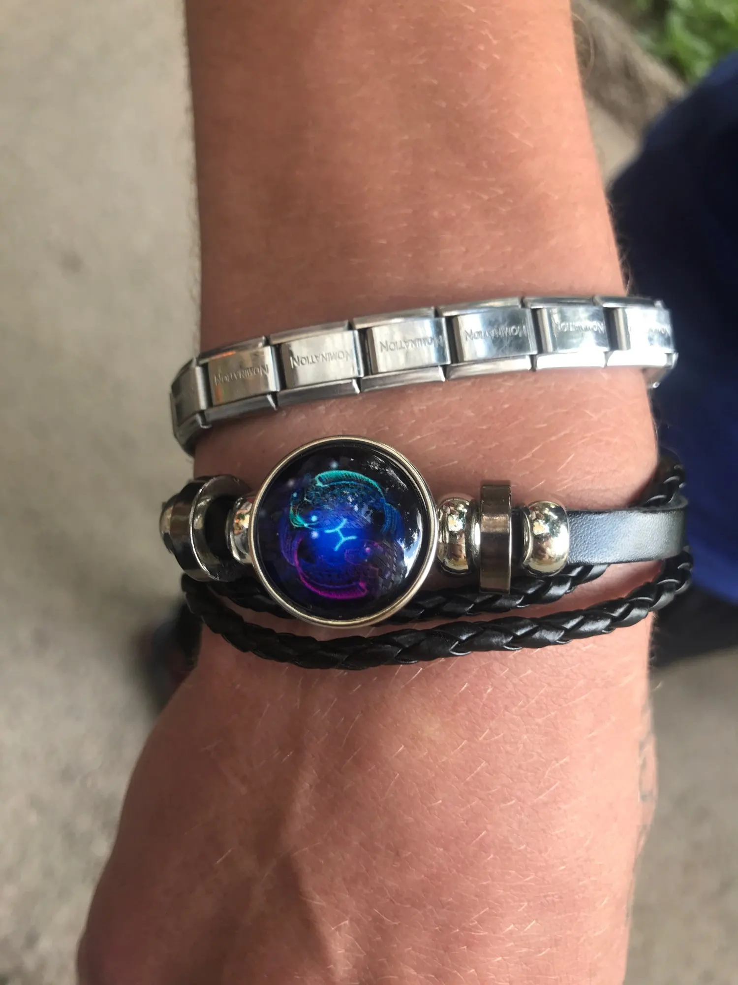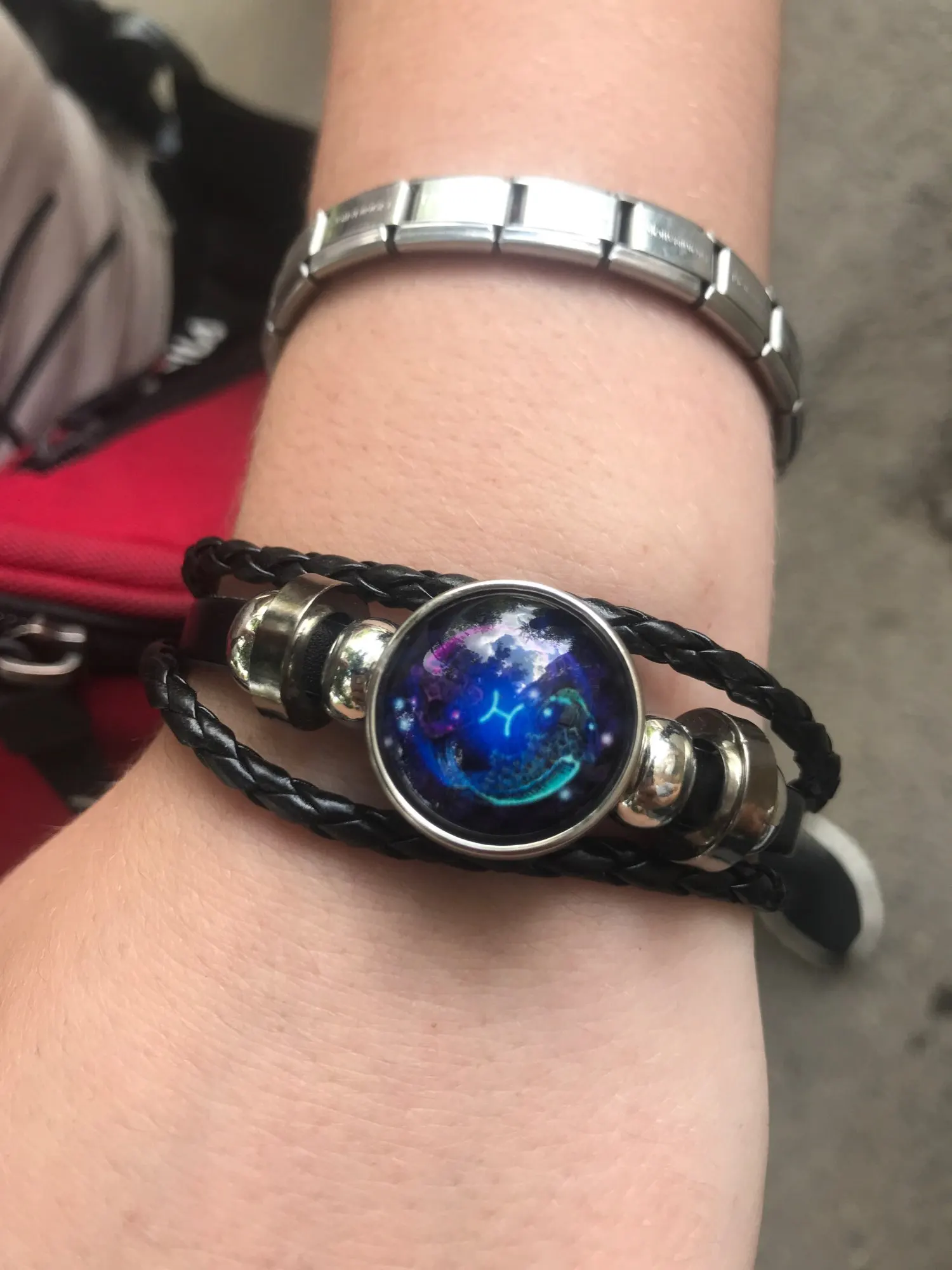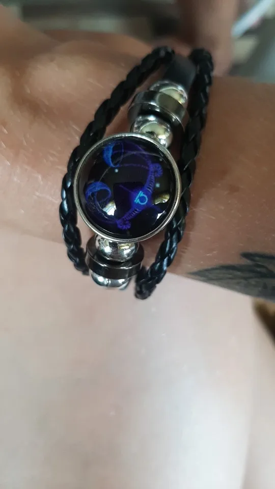 12 созвездий Зодиака Знаки зодиака Черная Плетеная кожа Близнецы Рак Лев Дева Весы СкорпионСтрелец Козерог Водолей Рыбы Плетеный стеклянный купол ювелирные изделия панк парный мужской браслет подарок оптовая продажа