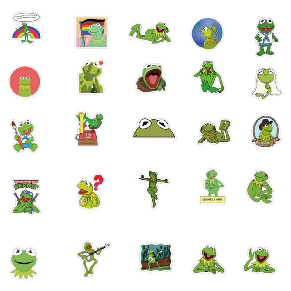 50 шт. зеленая Кермит катушка лягушка Мультяшные наклейки для автом...