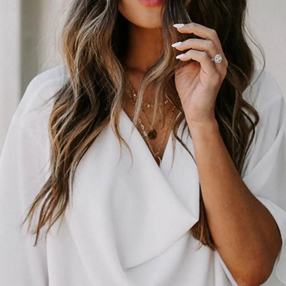Женская шифоновая блузка, Однотонная рубашка с коротким рукавом, V-образным вырезом и драпировкой спереди, размер S-2XL, женские топы, рубашка женская 2021