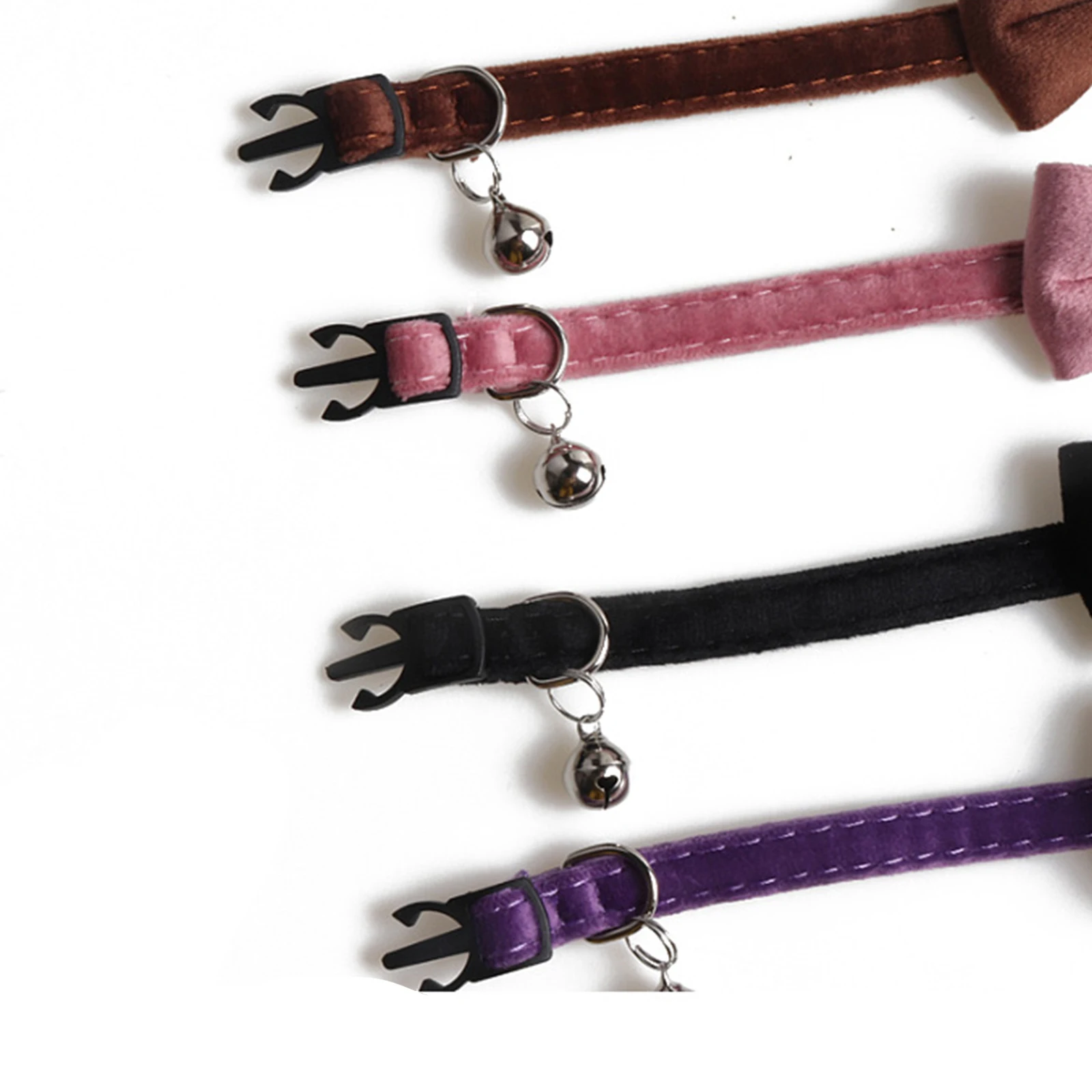 Бархатный воротник для кошек, однотонный бант, ошейники для щенков чихуахуа с колокольчиком, регулируемая безопасная Пряжка, аксессуары для домашних животных длиной 28 см, 1 шт.