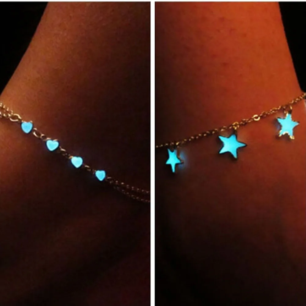 Ножной браслет на щиколотку, винтажный браслет со светящимися звездами для ног, Пляжная Цепочка-анклет, Очаровательная бижутерия, светится в темноте