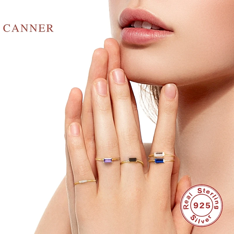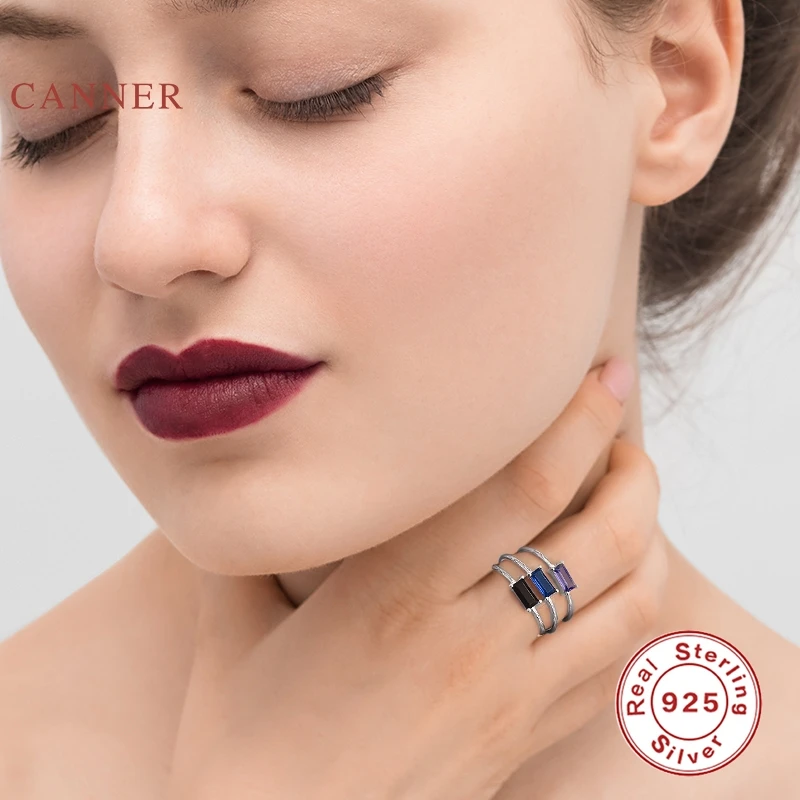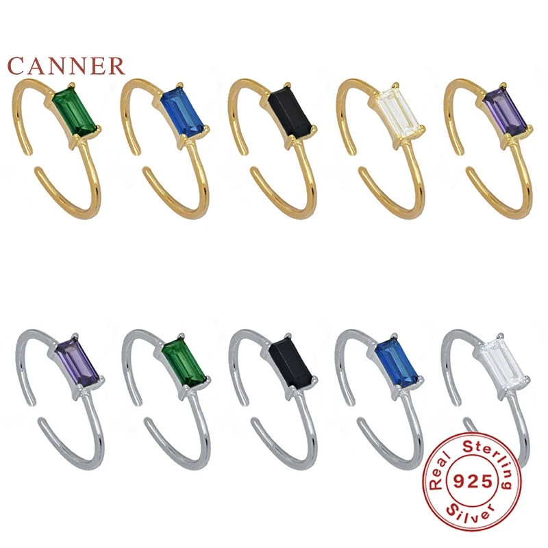 Кольцо CANNER из стерлингового серебра 925 пробы с квадратными чернымисинимизеленымифиолетовымибелыми бриллиантами, регулируемое женское ювелирное изделие