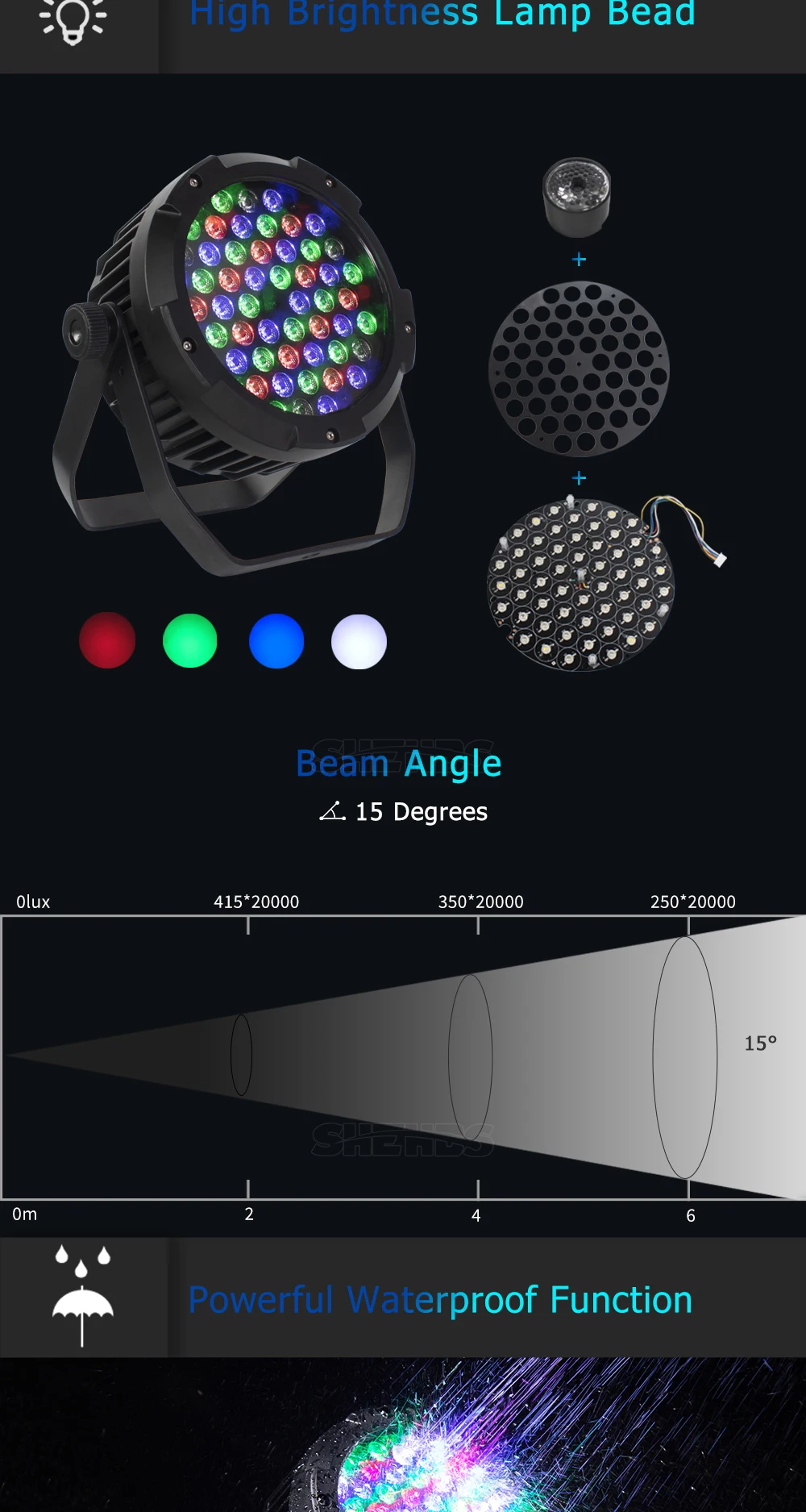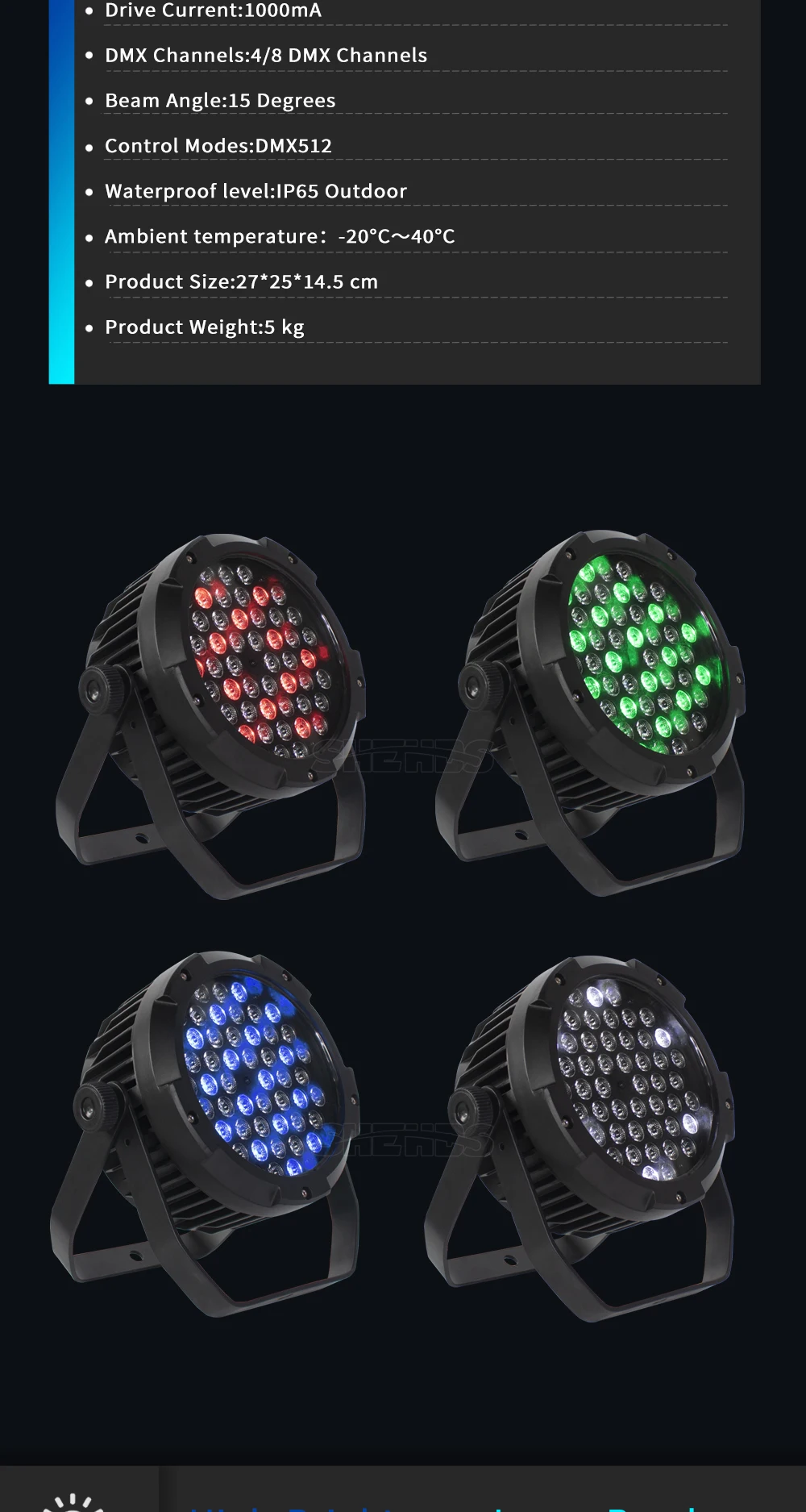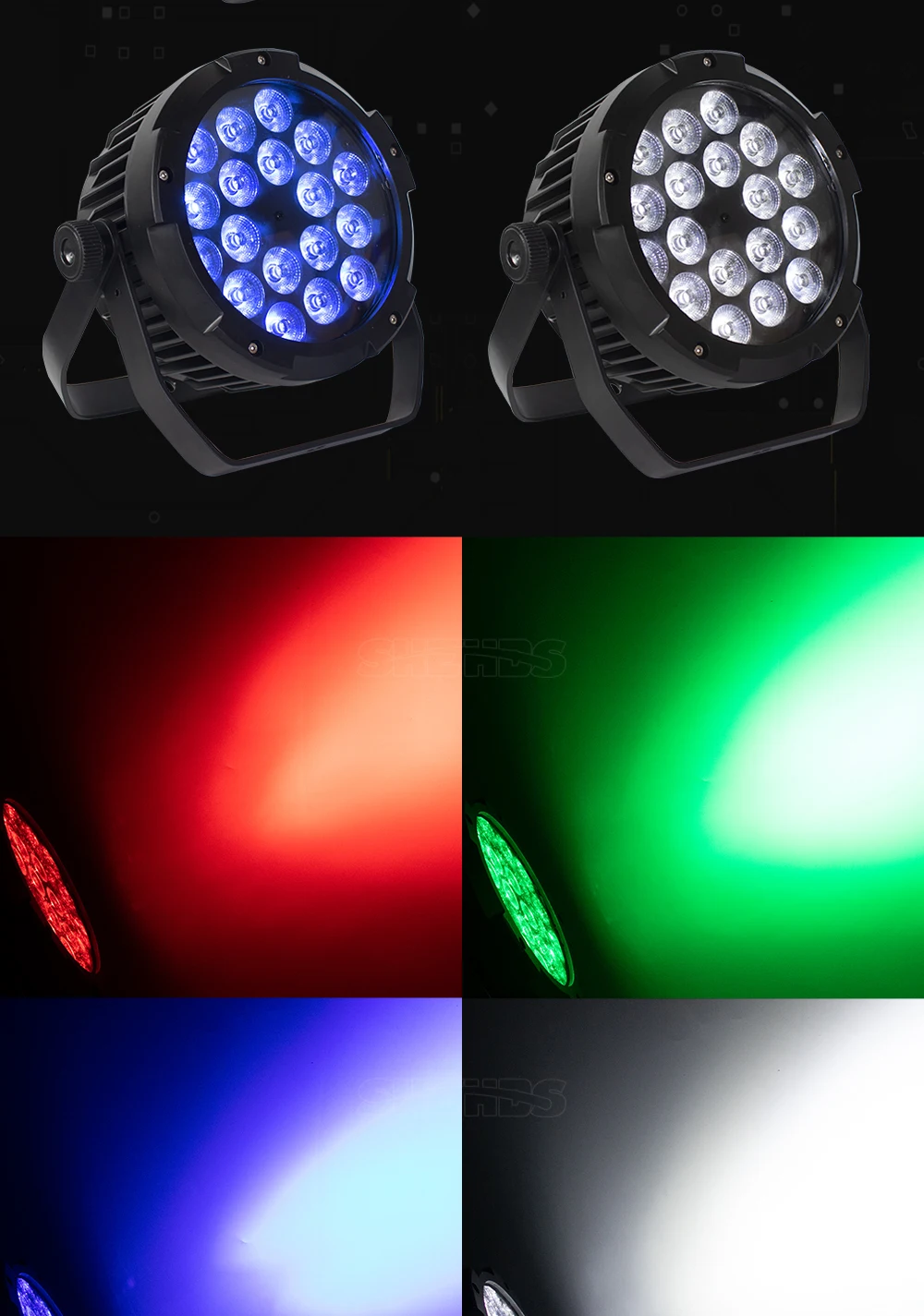 3. Светодиодный источник: светодиодный 18 × 12 Вт RGBW 4в1 красный, зеленый, синий, белый и смешанный цвет