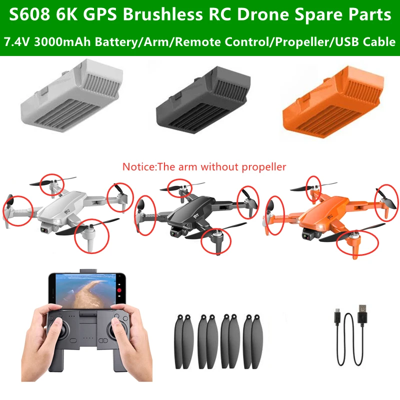S608 GPS бесщеточный 6K воздушный пульт дистанционного управления Дрон запасная часть 7,4 V 3000mAh батареяРычагпропеллерпульт дистанционного управления USB зарядный кабель
