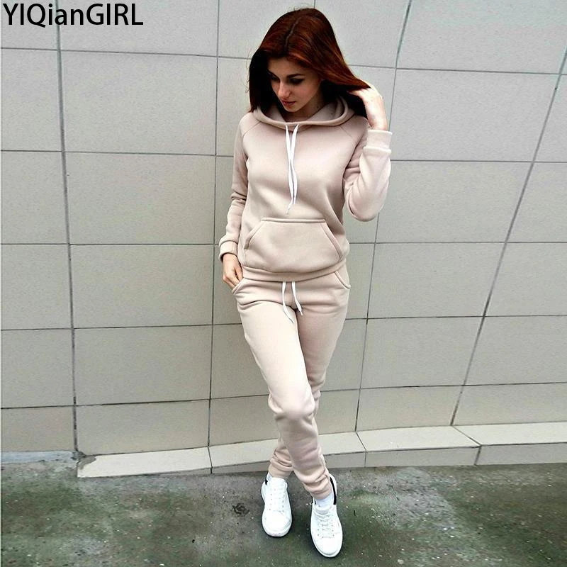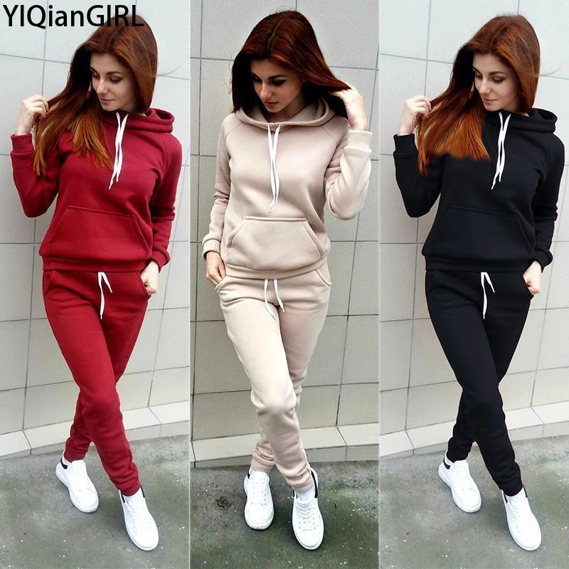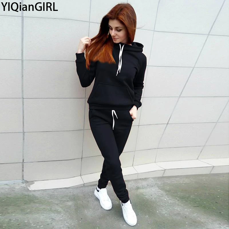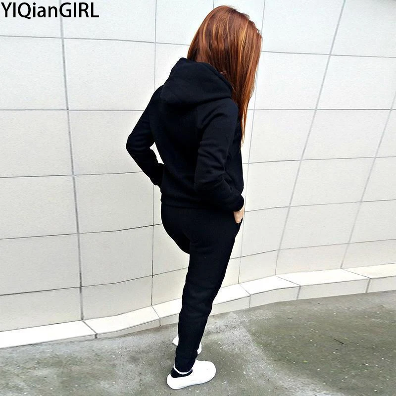 Свитер женский флисовый с капюшоном, спортивный, Осень-зима 2020 г., толстовка с брюками