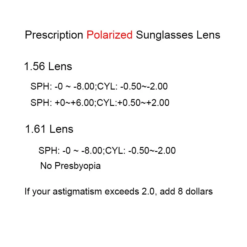 Линзы, рекламируемые как Поляризованные, на самом деле, это ложность. Продажа как цветные линзы, но потребовался 3 недели, чтобы сделать очки с предлогом "Уважаемый Клиент линзы должны быть на заказ тонированные" Какая нагрузка лжи. В мой 6-й год заказа очки по рецепту на Aliexpress только этот дешевый магазин отправил две пары очков с защитным чехлом всего 8n мешок с замком на молнии. Жалкий. Сделайте заказ у этого продавца на свой собственный риск.