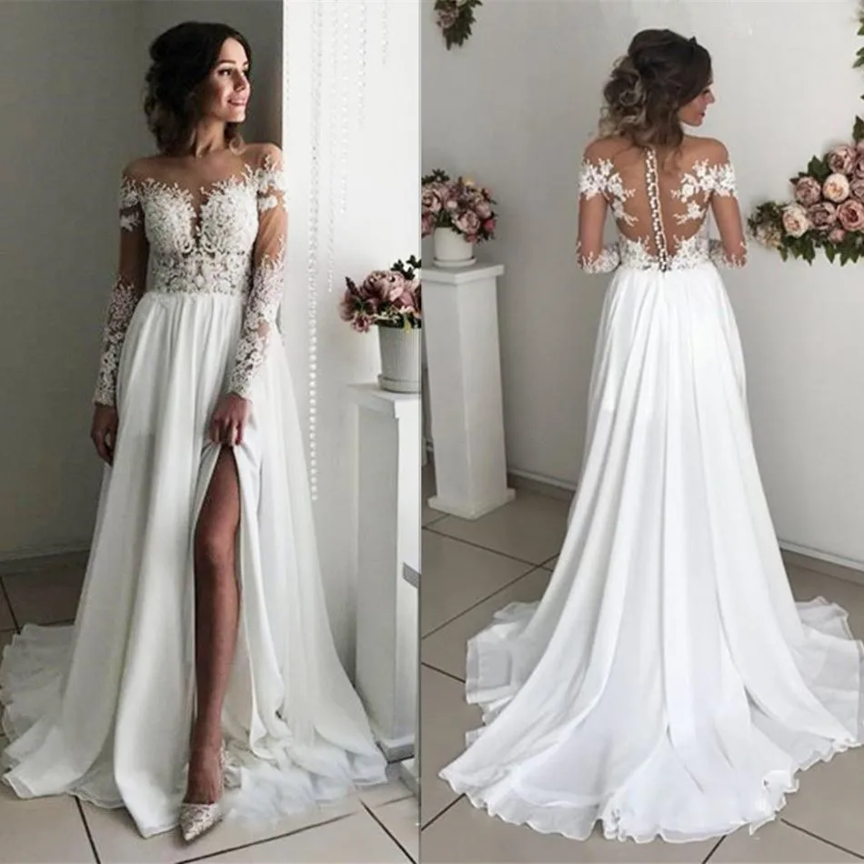 Женское длинное свадебное платье, шифоновое платье с длинным рукаво...